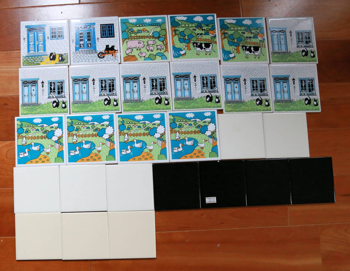 柄入りのタイル16枚と無地のタイル12枚のセット鍋敷きやリノベーション用にリメイクリフォーム