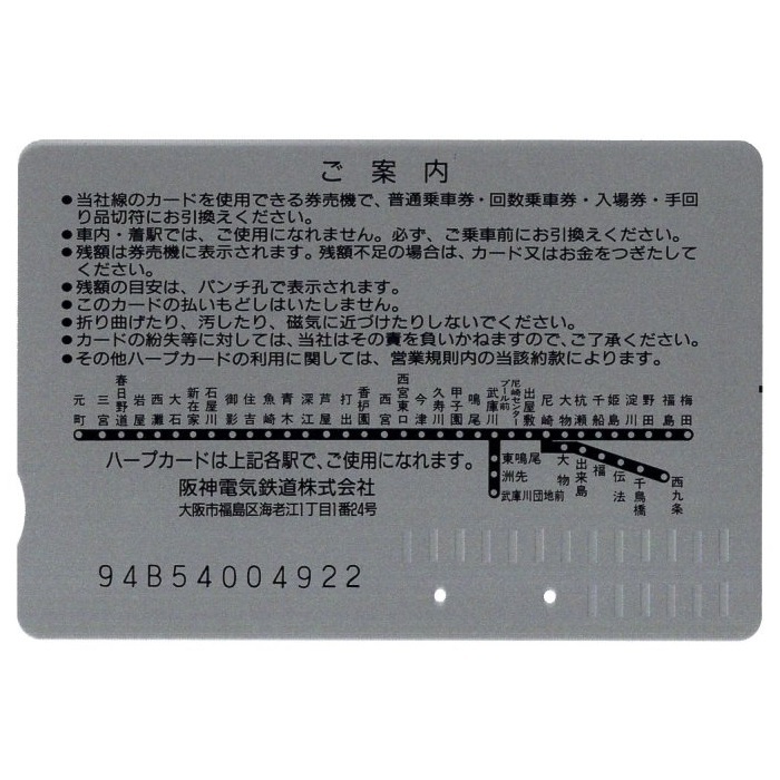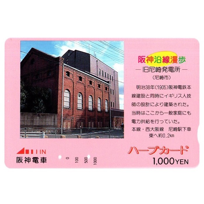【使用済】阪神電気鉄道(阪神電車) ハープカード 阪神沿線漫歩 阪神電鉄旧尼崎発電所(尼崎市) 1枚