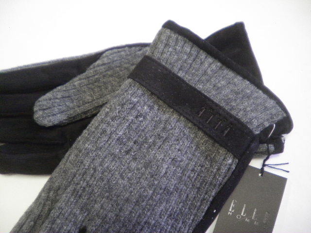 商品 情報 | ☆新品 ☆ロゴマーク入りです!!(モニター環境により色が写真と少し異なる場合があります) ☆カラー 濃いめのグレー&ブラック系 ☆素材 手の平 豚革スェード 手の甲 ニット(ウール混) ☆裏地 ポリエステル made in china ☆平置きサイズ *手首~中指の先 約 24cm *手首の幅 約 11cm *中指の長さ 約 8、6cm ※参考程度に (測る場所により多少の誤差が生じます) ☆表記サイズ M 24cm (手囲いサイズМ 23~24cm L 25~26cm LL 27cm~)☆ブランド ELLE HOMME エル(正規ライセンス商品) |