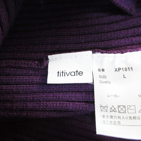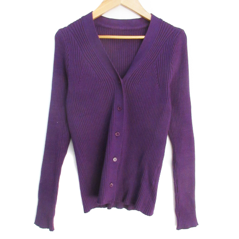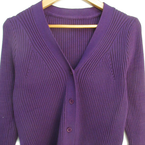 ティティベイト titivate ニットカーディガン リブ ミドル丈 無地 L 紫 パープル /FF44 レディース