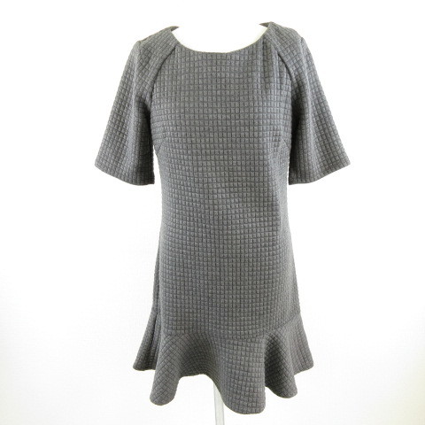 ルーシーパリス lucyparis ペプラムワンピース ワッフル ミニ 五分袖 グレー S *A954 レディース