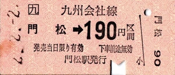 [九] 篠栗線 門松→190円区間 門松駅発行 パンチ