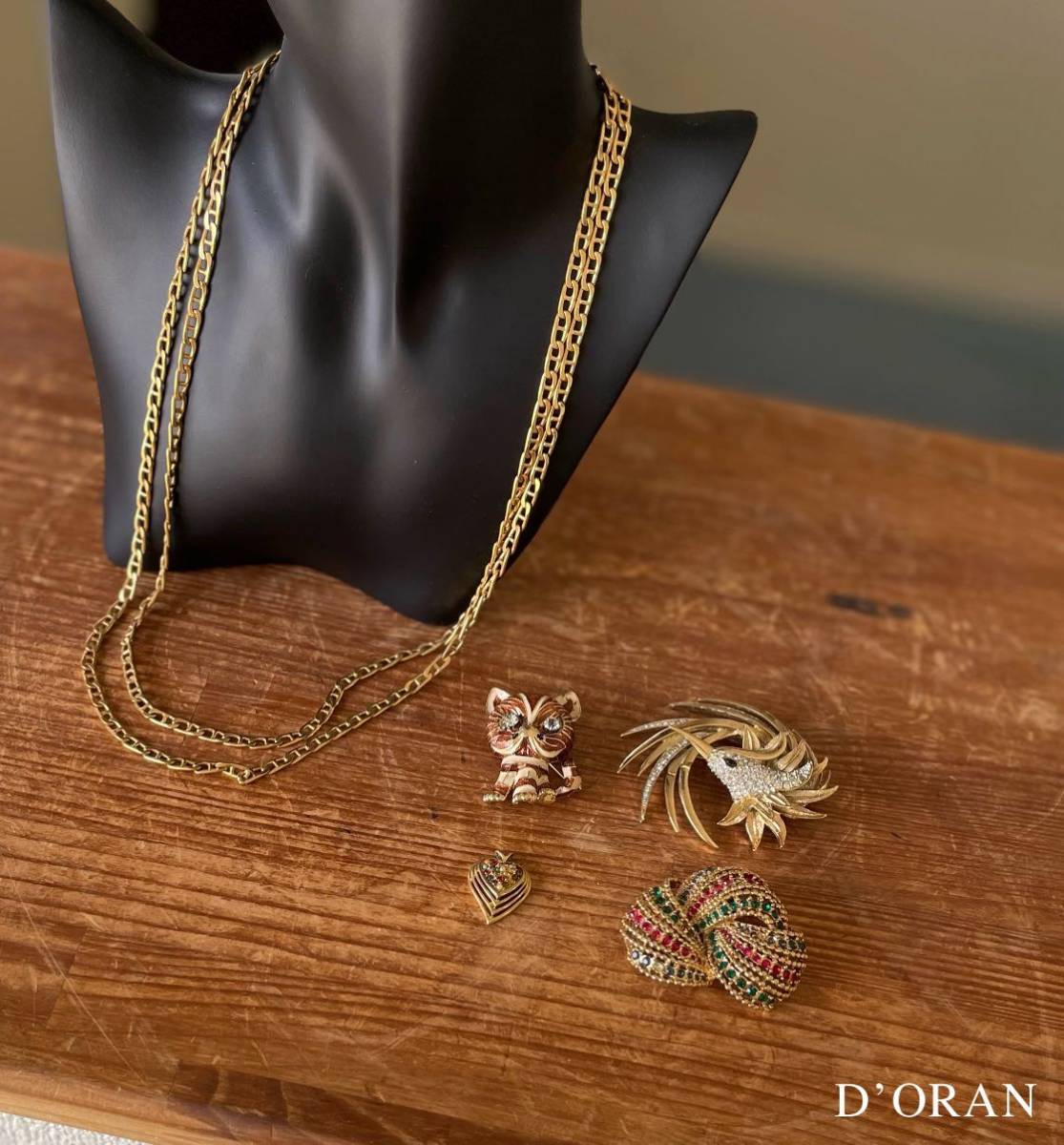 1st308 D'ORAN ドーラン アクセサリー 5点セット ネックレス ブローチ トップ ヴィンテージ ゴールド マルチカラー