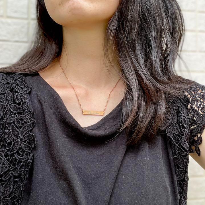 バー型のネックレストップが首元を華やかにし、華奢見えする大人可愛いネックレスです。
