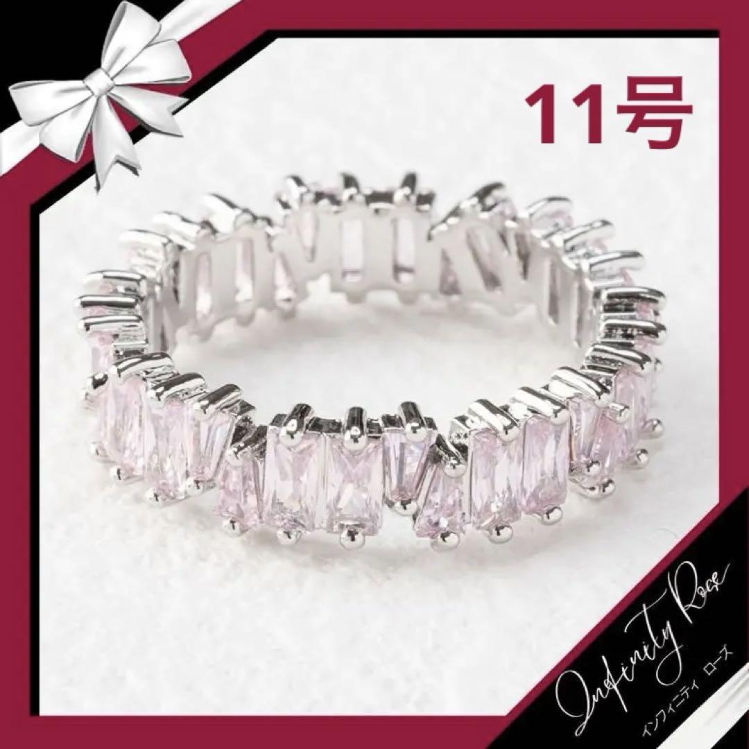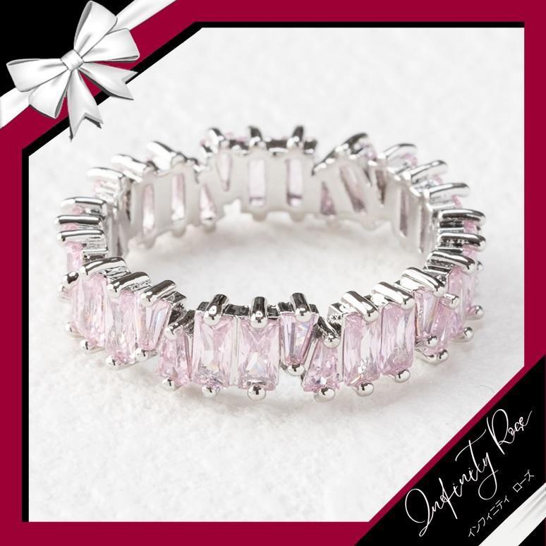 (R002SP)11号 シルバー×ピンクスクエアキュービックジルコニア(CZ)リング 爪留め指輪
