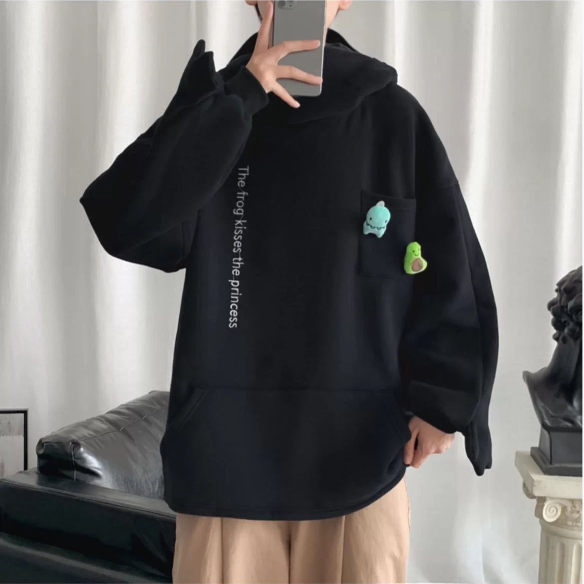 『 パーカー カエル フード トップス ビッグシルエット 長袖 』