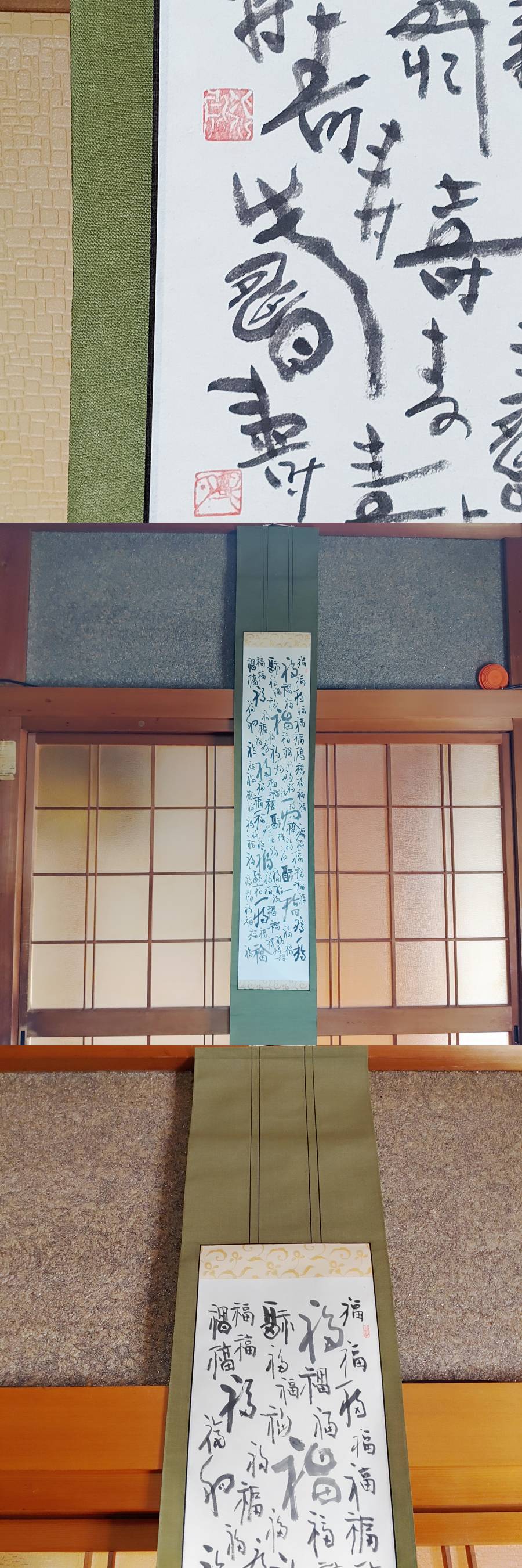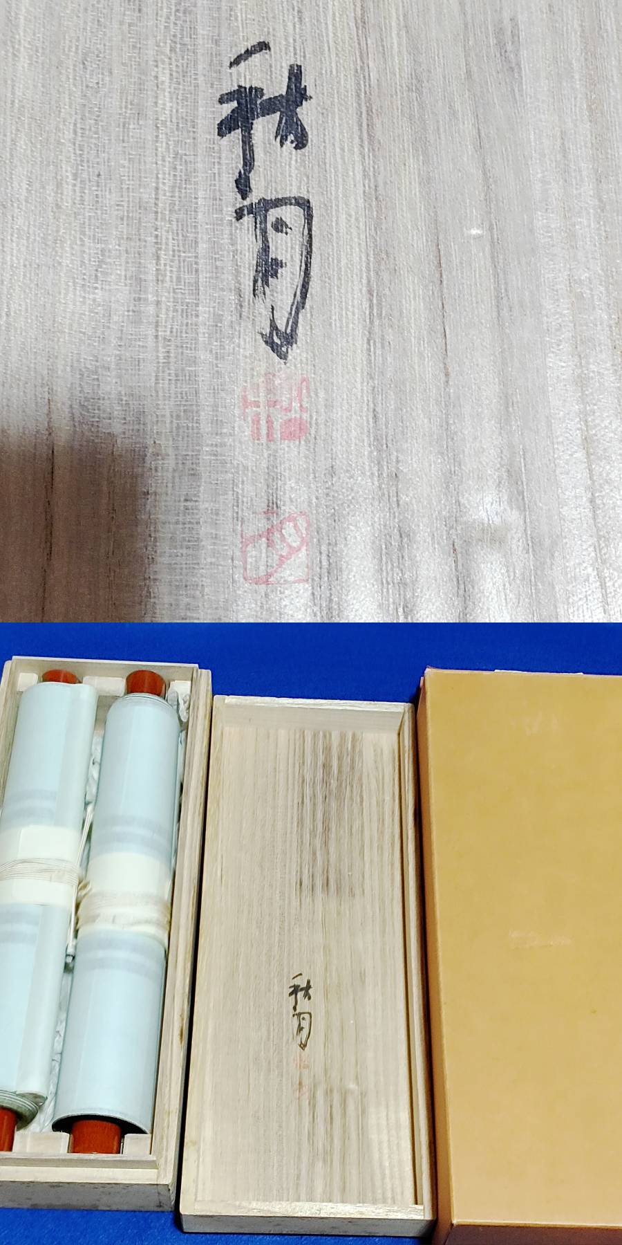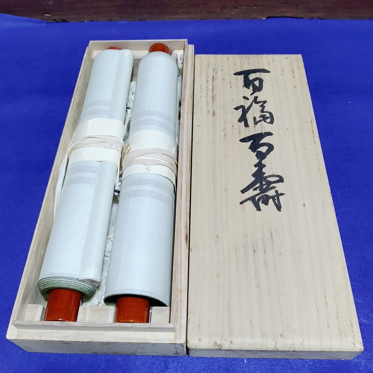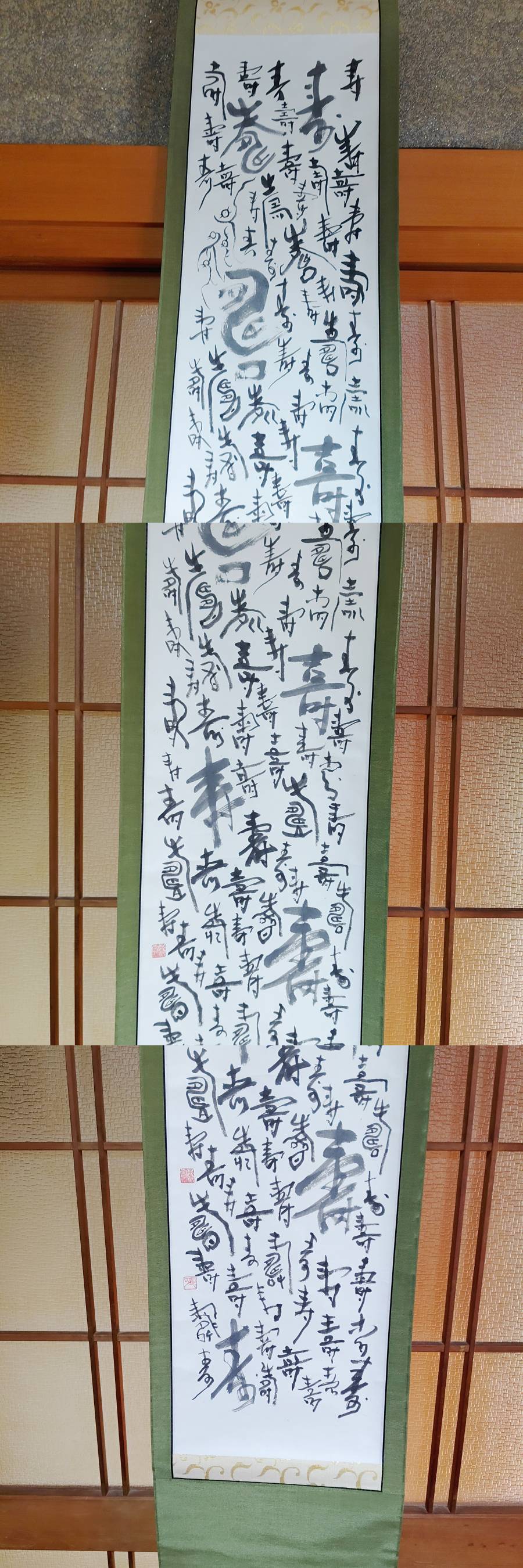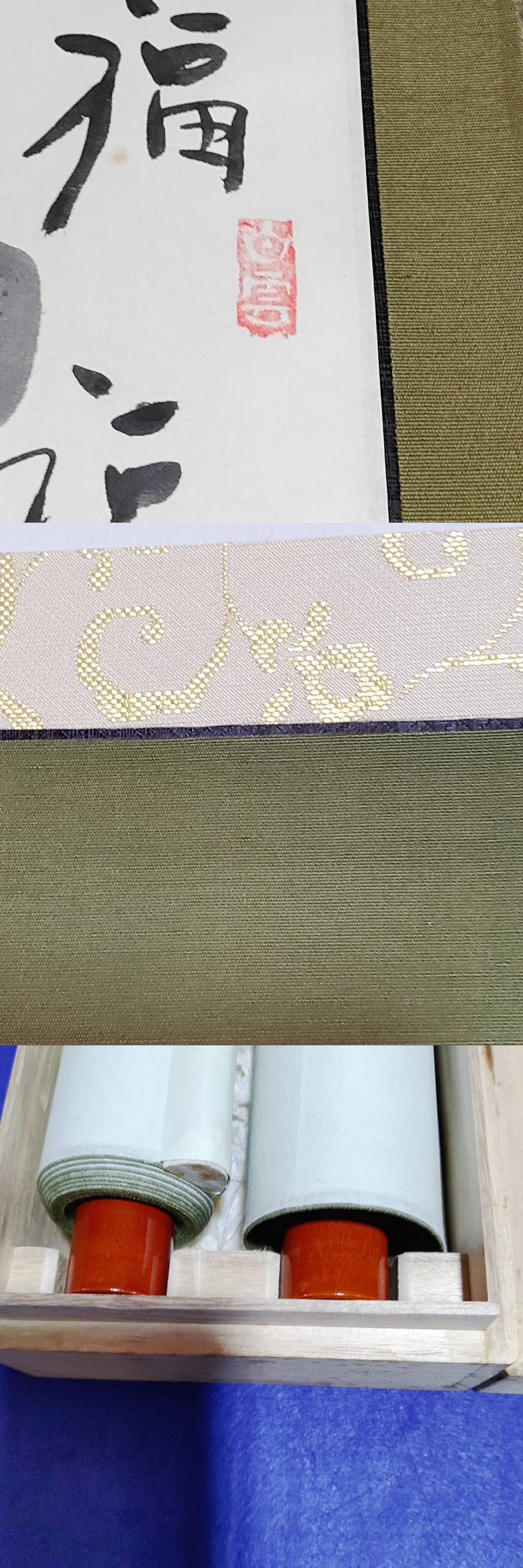 完全売り切り品北川秋月 百福 百寿 1対 掛け軸共箱付絹装墨書き(模写)縁起物 商品サイズ長さ1m80センチ 軸先部横幅34センチ 商品状態説明北川秋月 百福 百寿 1対 掛け軸共箱付絹装墨書き(模写)古品ですが状態も極上品縁起物新春床の間に掛けるもよし。 詳しくは、写真参照でお願いします。(下にフォトアップ写真ついてますので参照お願いします。) 発送は、ゆうパックにて発送いたします。 落札後ヤフーシステム期間内すべて取り引きお願いします。