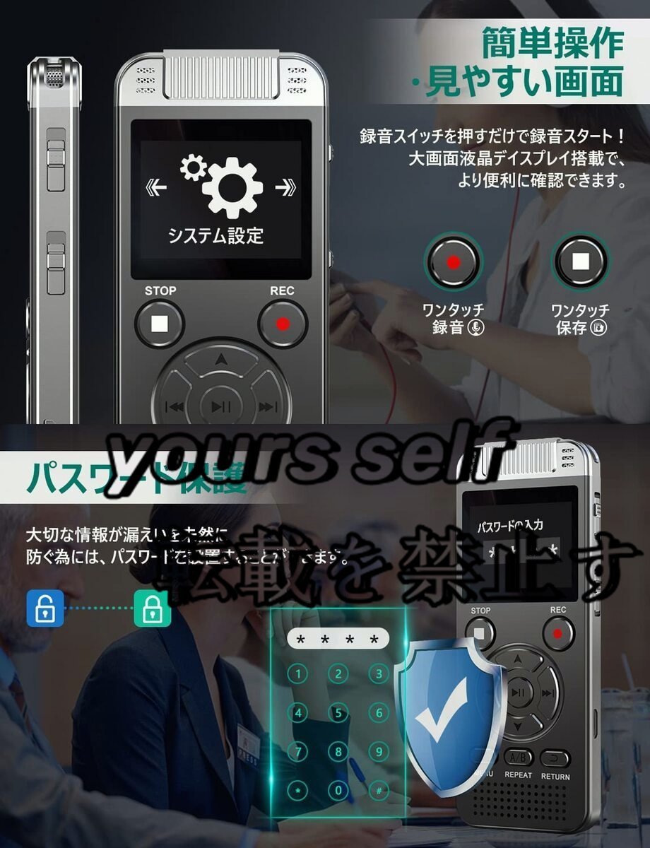 icレコーダー 録音機 ボイスレコーダー 小型 高音質 長時間 4GB大容量 1.4インチ液晶画面 ダブルノイズキャンセリング ステレオマイク搭載