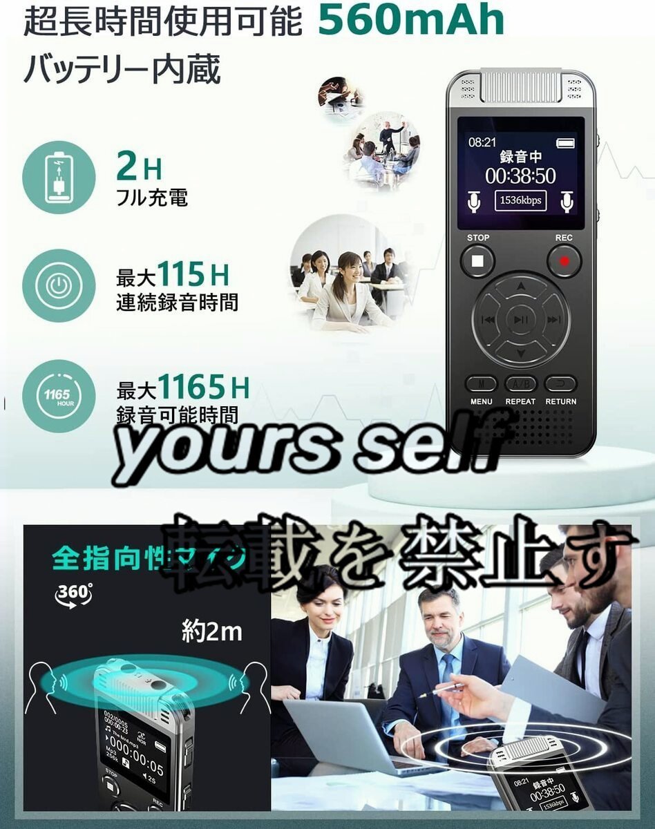 ★更に、本体に560mAh超大容量バッテリーを内蔵され、最大115時間連続録音可能のため、従来機種に比べて、2.6倍も長持ち、会議や講義など長時間録音した方でも安心。インタビュー?メモ録?習い事の記録?議事録の作成など、多彩な用途で大活躍します。