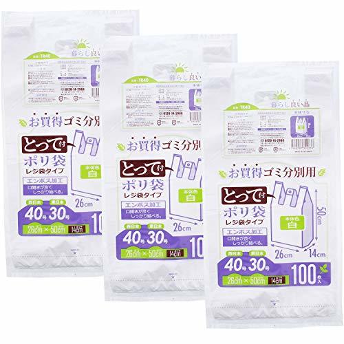 ・白 TR40 L TR40・・Size:TR40 LPatternName:3個セット・本体サイズ:約26×50cm、マチ14cm(1枚あたり)・素材・材質:ポリエチレン・原産国:ベトナム・厚さ:約0.016mm・耐冷温度:マイナス約30度説明 商品紹介 ●乳白色なので中身が見えにくいレジ袋 ●充分な厚みで破けにくいのが特長です。 ●フック穴付きでいろいろな場所でお使い頂けます。 ●エンボス加工で滑りにくく、取り出しやすいので便利です。 ●普段使いはもちろん、業務用にもオススメです。 ●可燃物のため火のそばに置かないでください。 安全警告 この袋は幼児や子供にとって窒息などの危険が伴うものです。幼児や子供の手の届かない所に保管してください。