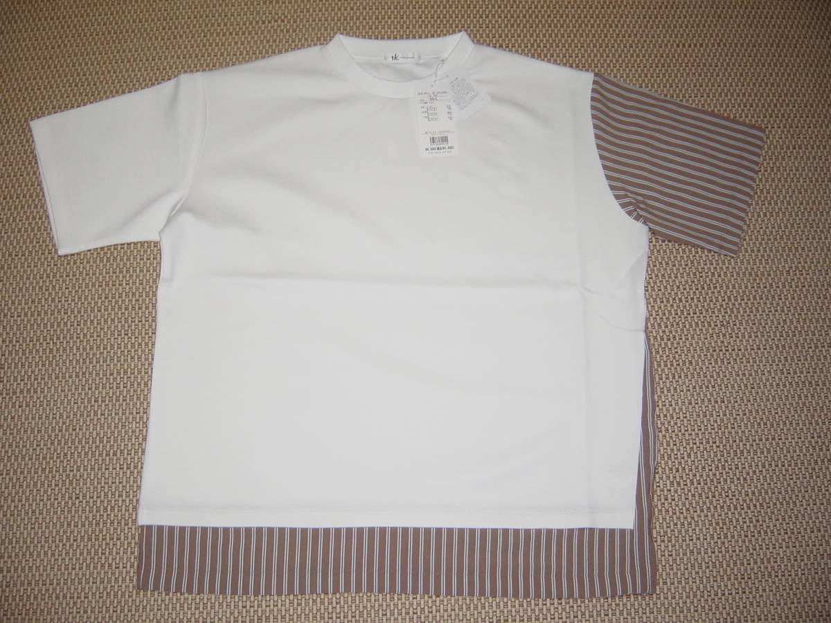 新品未使用☆TKタケオキクチ ストライプレイヤード半袖シャツ(L)