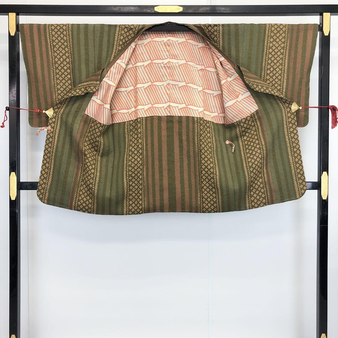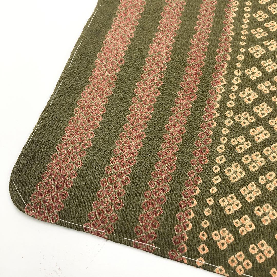 道行コート 鹿子絞り 縞模様 縮緬 千歳茶色 しつけ糸 H-4044