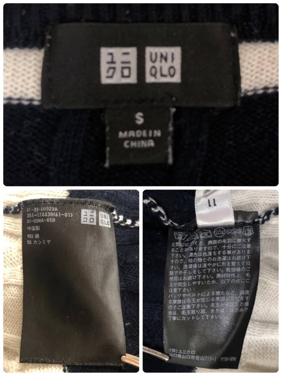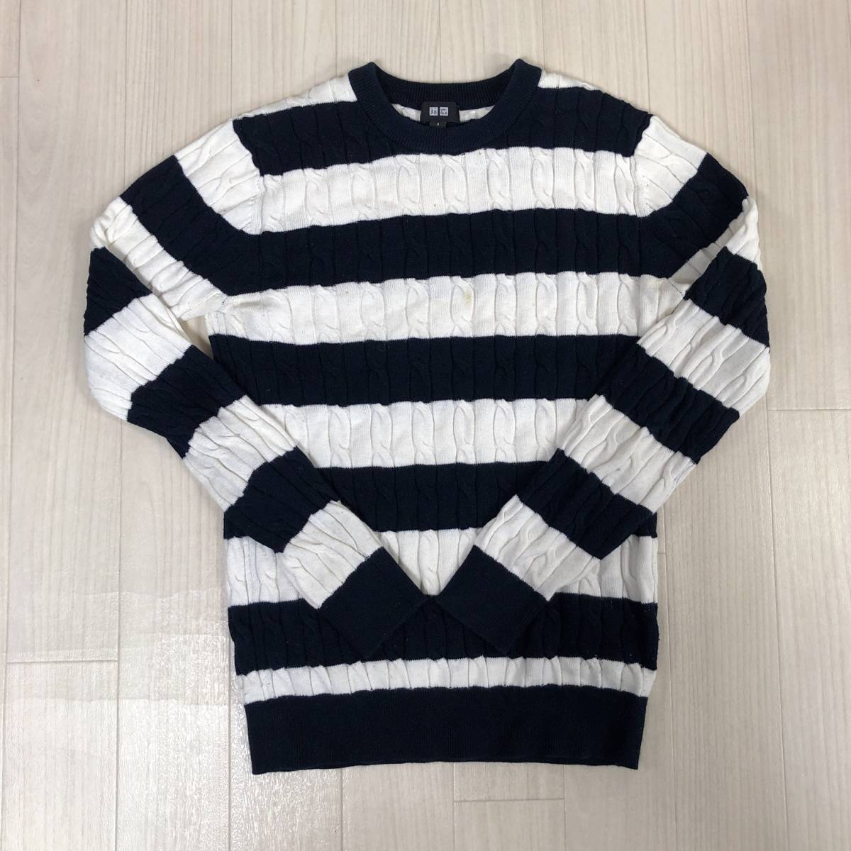 Y0366 UNIQLO ユニクロ レディース トップス ニット セーター 薄手 Sサイズ ブラック 黒 ホワイト 白 ボーダー 綿 コットン カシミヤ混