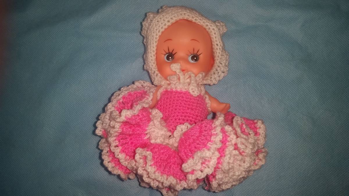 キューピー:レトロ人形 ピンク 毛糸 ドール 高さ約15㎝ 美品 IE2FD/オクパナ