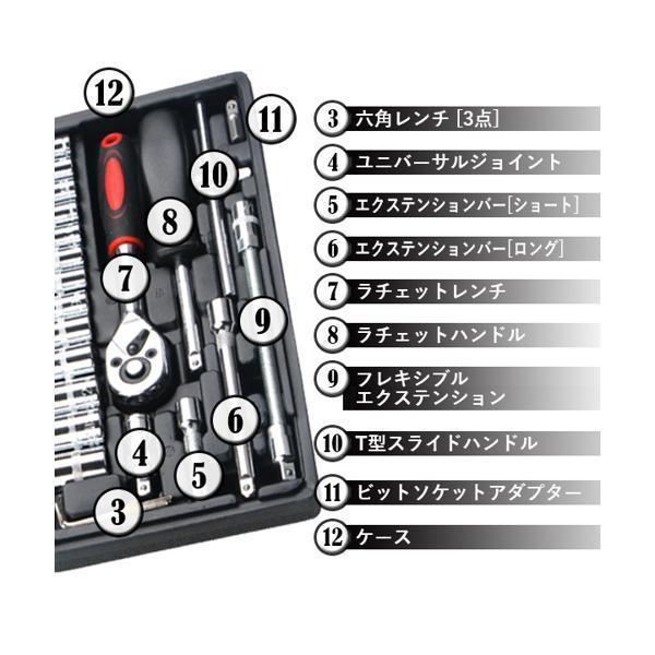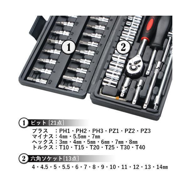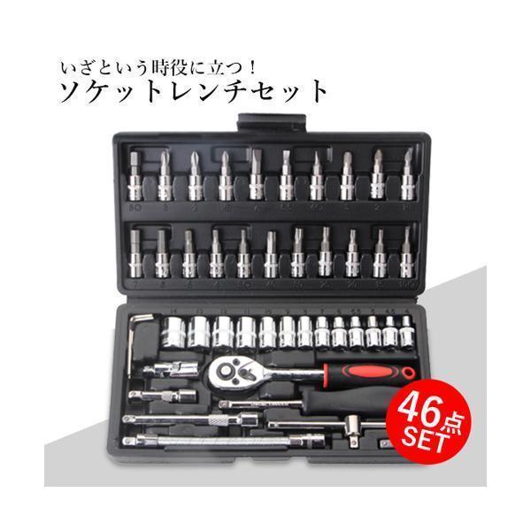 ソケットレンチセット 工具 ラチェットレンチ ドライバー DIY ビット ツール 工具セット ツールセット 1/4 46点セット 一式 フルセット