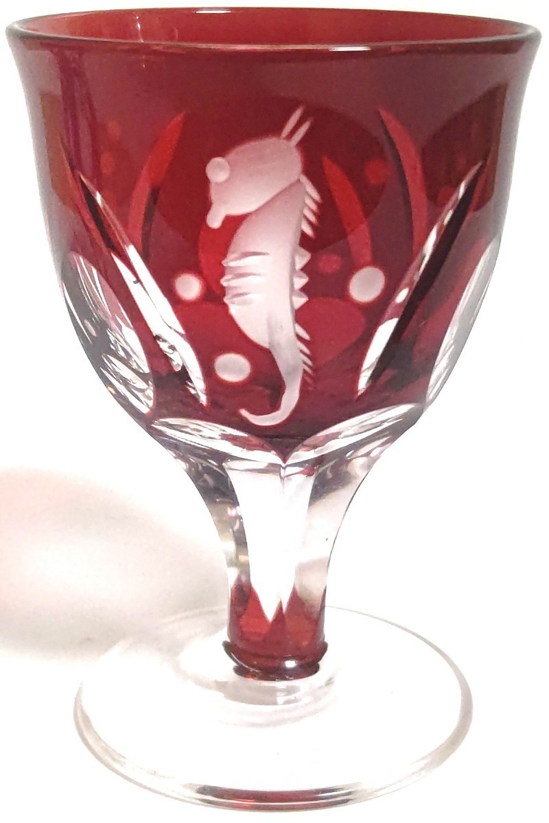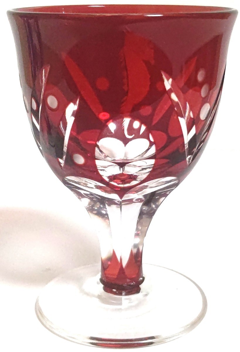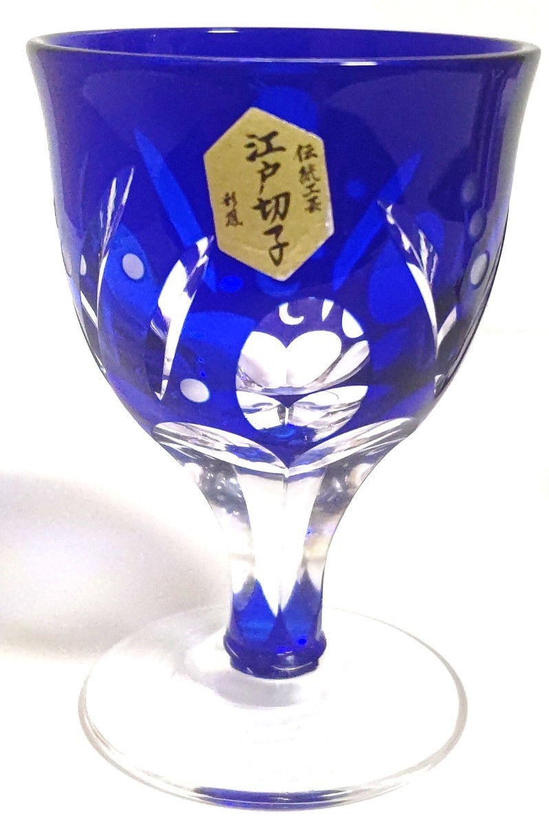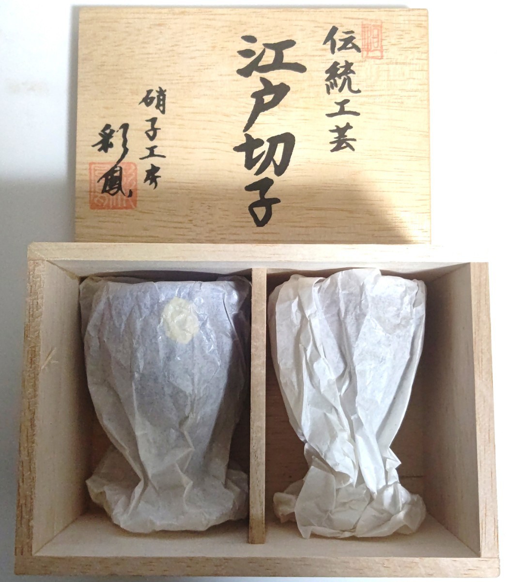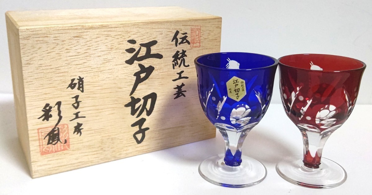 伝統工芸 江戸切子 彩鳳 食前酒グラス 赤 青 2個セット 中古品