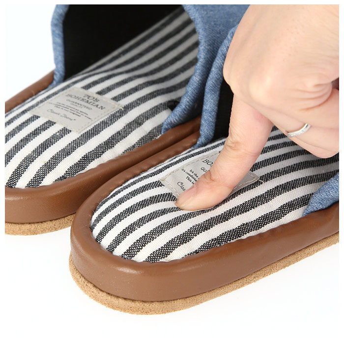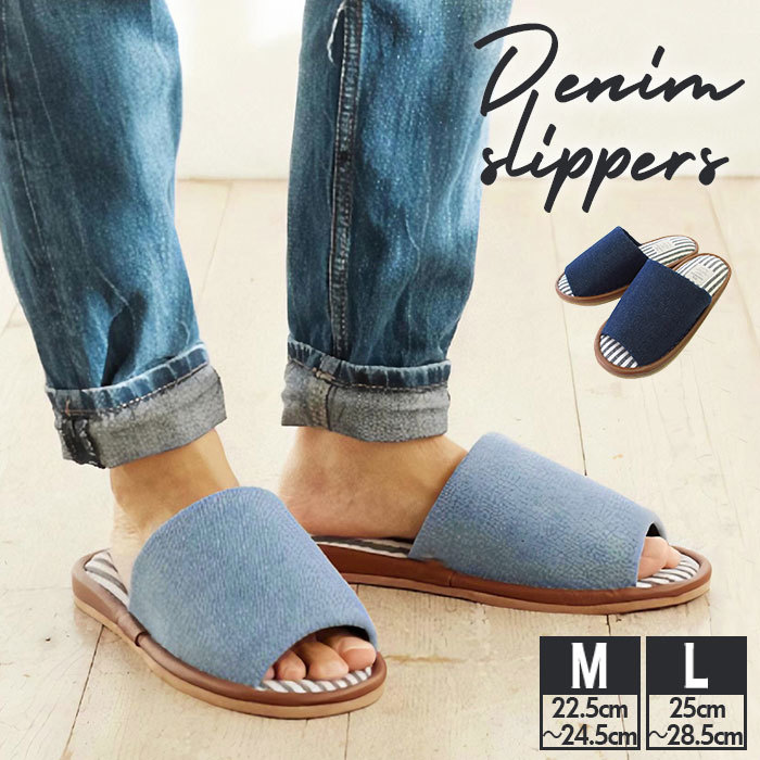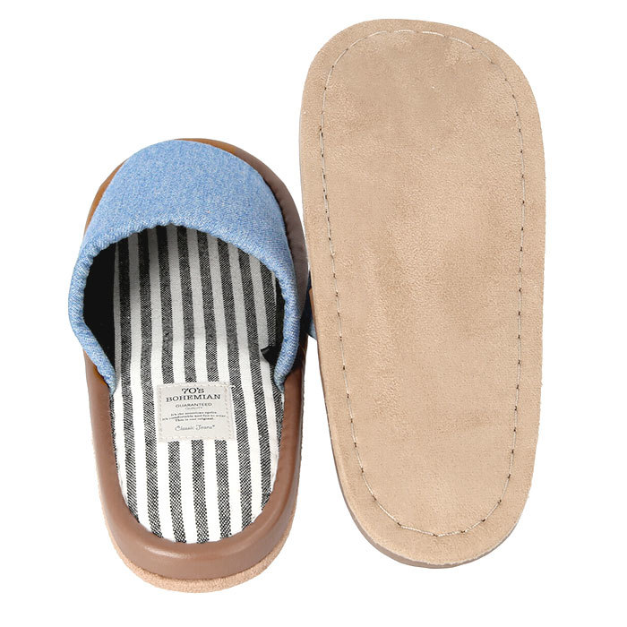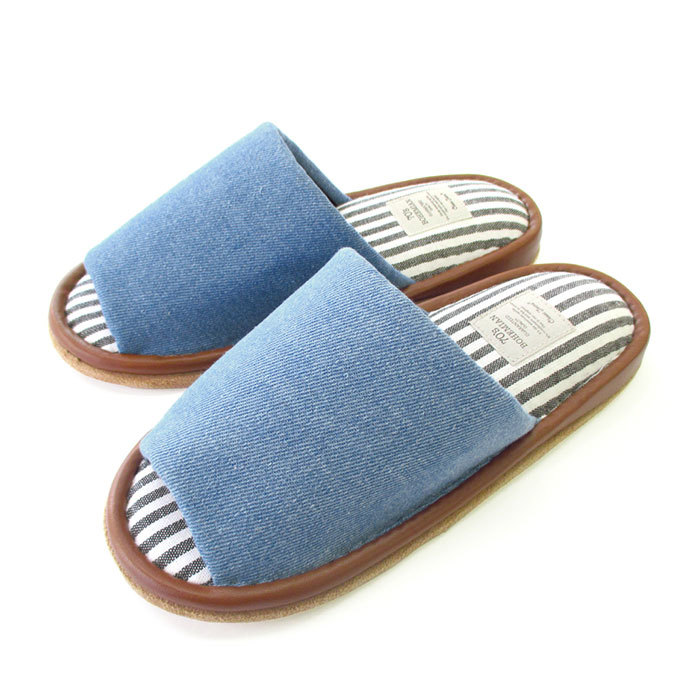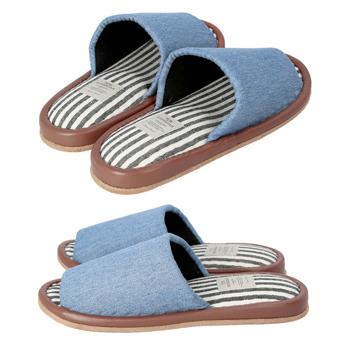 商品説明 | ・デニム生地と中敷の爽やかなストライプが相性抜群なスリッパが登場。 ・サイドのレザー調のポリウレタン生地がアクセント!デザイン性がアップしたスリッパ。 ・底には静音効果のあるポリエステルスエード生地を使用。パタパタ音が鳴りにくい! ・MサイズとLサイズの2サイズなので、カップルやファミリーで使える。 ・ユニセックスで使えるデザインなので、ペアで揃えてもおしゃれ♪ |