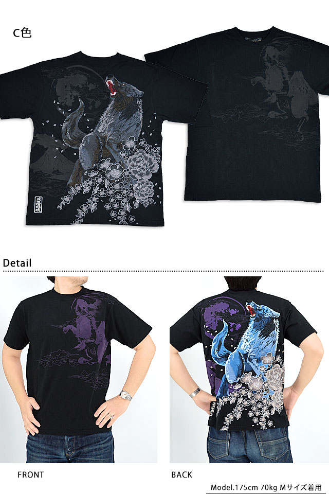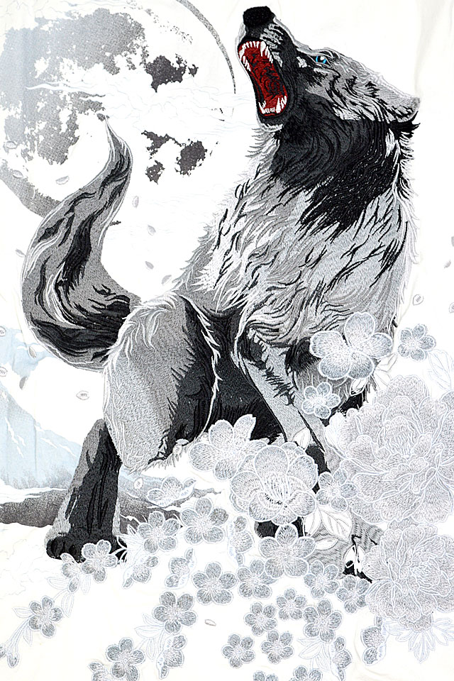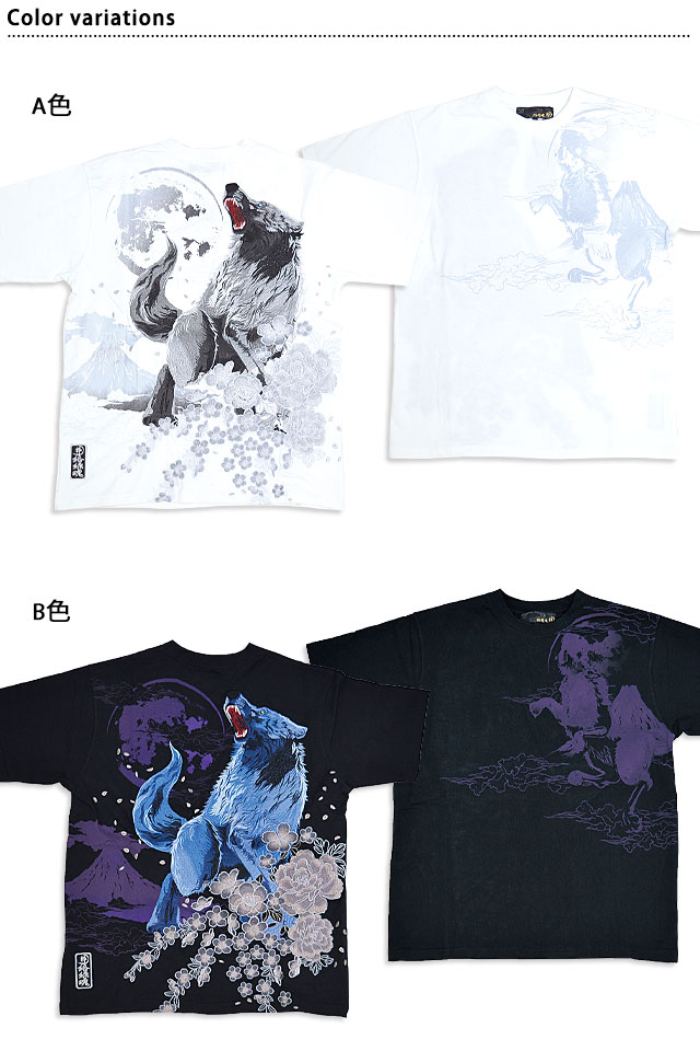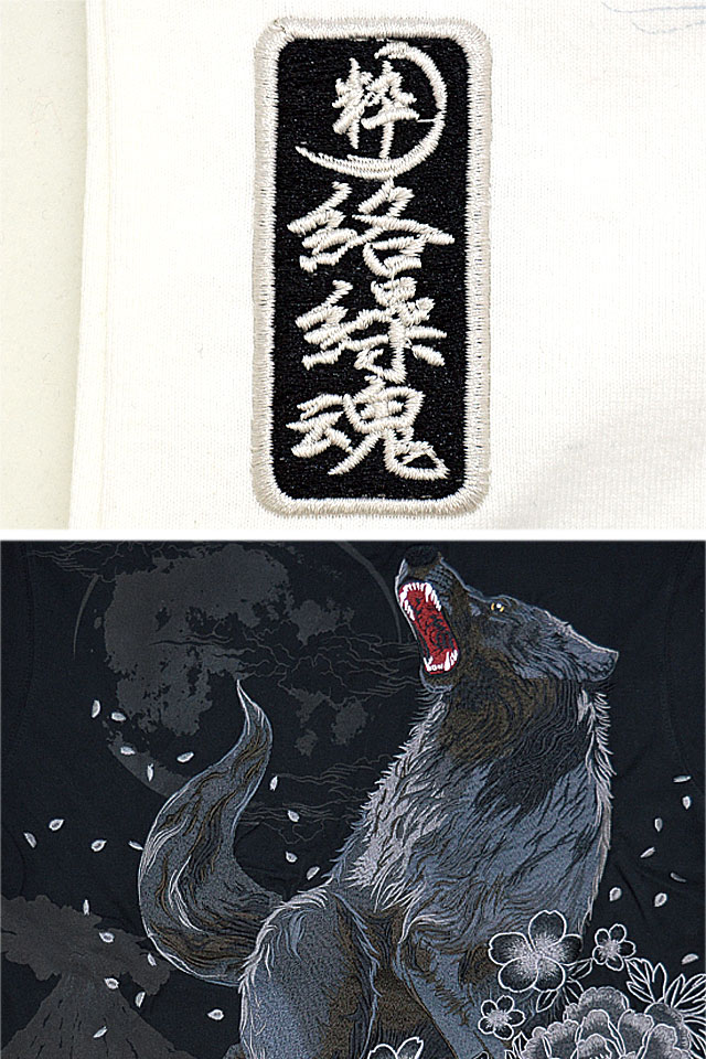 絡繰魂さんから「粋・孤狼の雄叫半袖Tシャツ(232036)」のご紹介です。 重みすら感じるほどの刺繍量が魅力的な粋シリーズから、最新作が登場しました。 今回モチーフの主役に採用されたのは、近年人気を博している狼柄。 バックにしっかり柄を入れている分、フロントはシンプルに仕上げ、メリハリを付けました。 ボディーには、刺繍に負けないコシのある綿100%の生地を使用。 | |||||||||||||||||||||||||