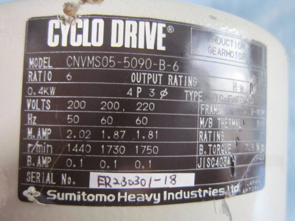 住友ギヤモーターCNVMS05-5090-B-6 0.4kw 4P 200V INDUCTION GEARED MORTOR (約:軸長50mm 軸直径28mm /16kg ) SUMITOMO