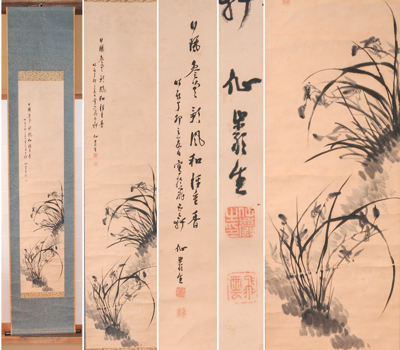 【真作】仙巌 飛雲(筆)「蘭図画賛」軸 掛軸 箱 古画 肉筆 水墨 人物 古美術 古書 掛け軸 骨董 絵画 日本画 |