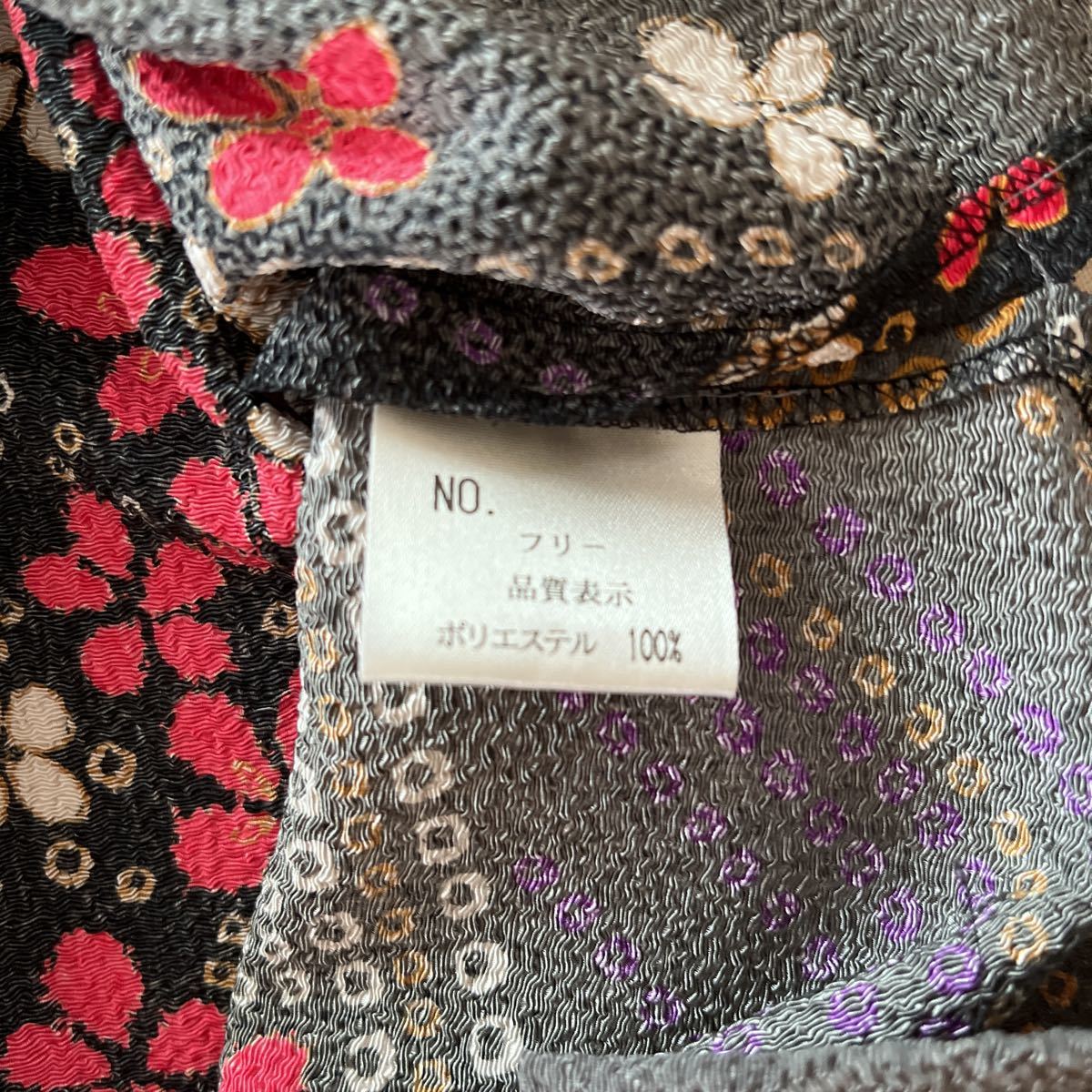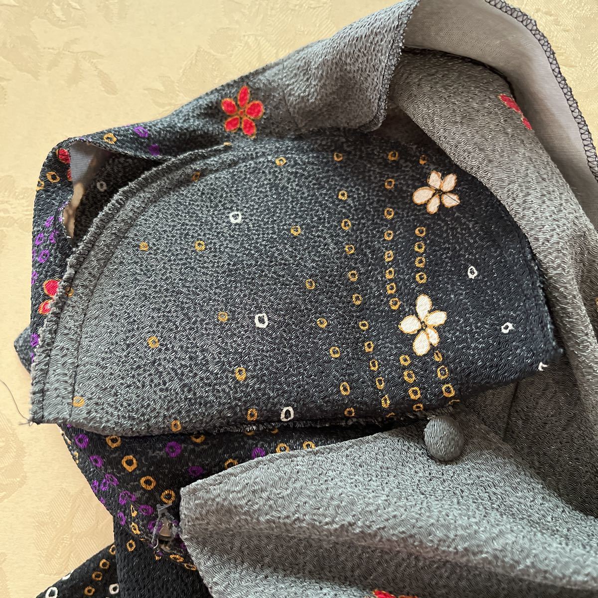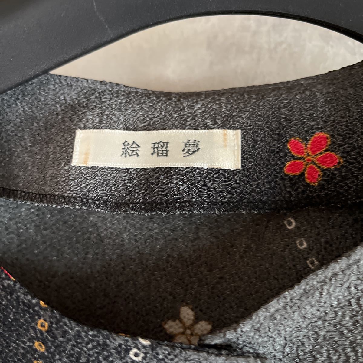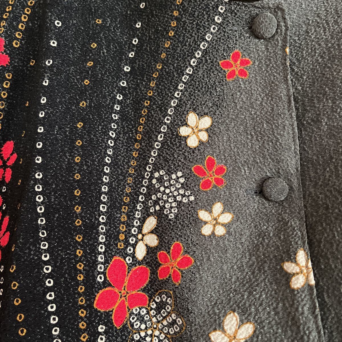 ★★絵瑠夢★★長袖 ジャケット ちりめん フリーサイズ 裾両側スリットあり グレー お花柄 くるみボタン ポリエステル100% 肩パッド付き です。