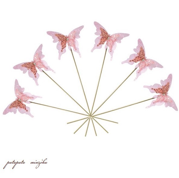 バタフライクリップ & ピック 6個セット ピンク 蝶 ディスプレイ オブジェ 雑貨 小物