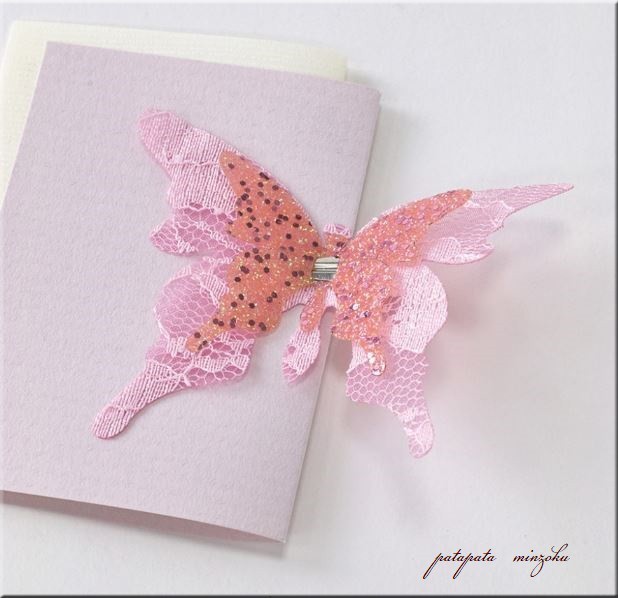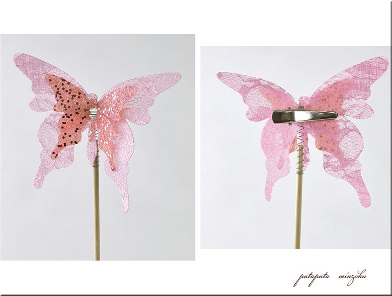 レースやサテンの生地をチョウチョの型抜きにしたクリップです。