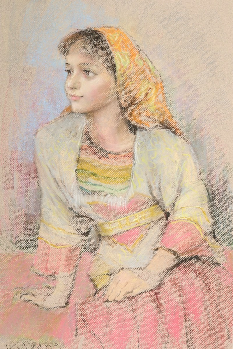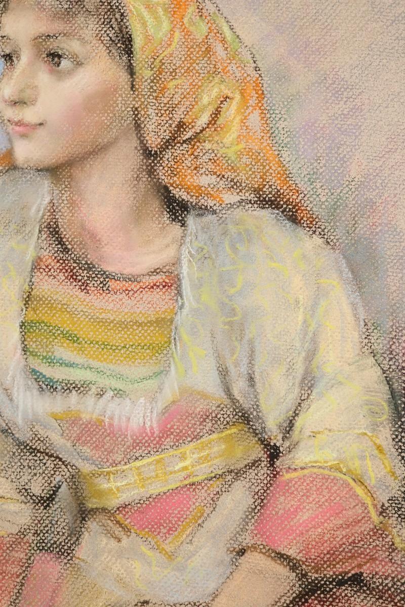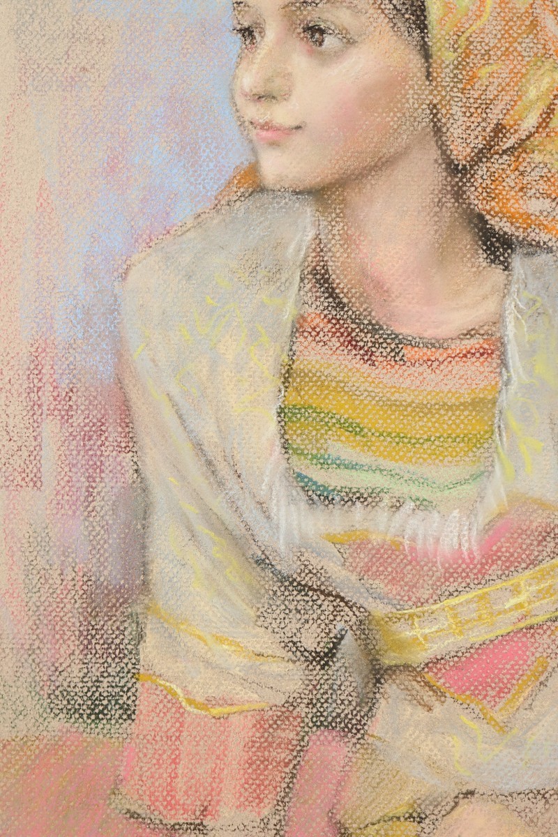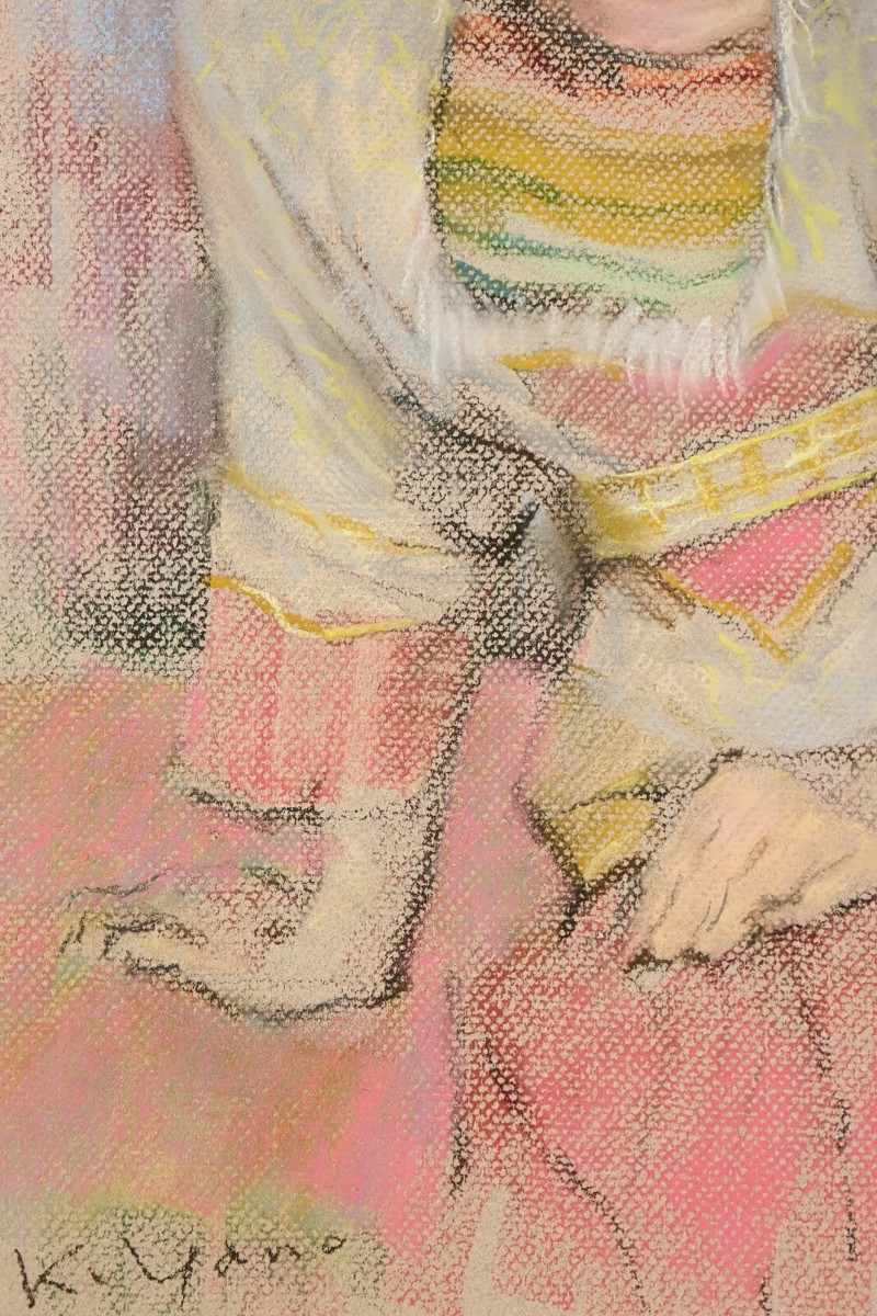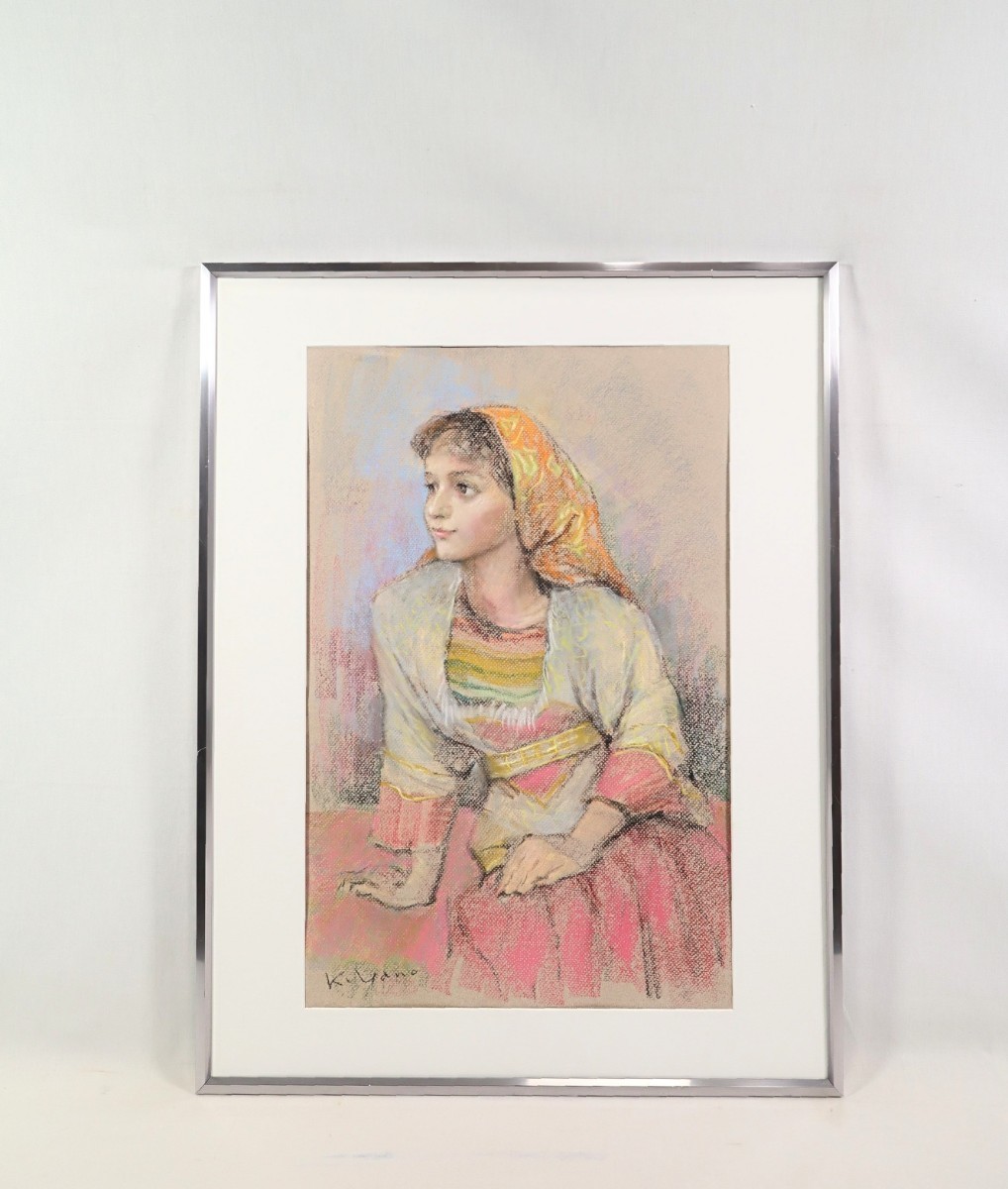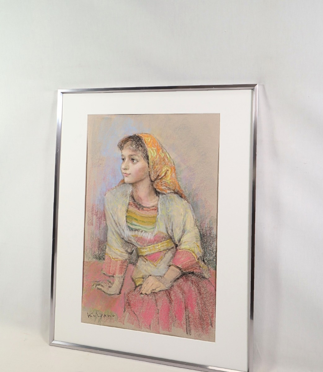 真作 矢野喜久男 1994年パステル「ラーハ 休息」画36×55cm 大阪府出身 行動展活躍 須田国太郎に師事 確かなデッサン力、柔らかな表情 7302