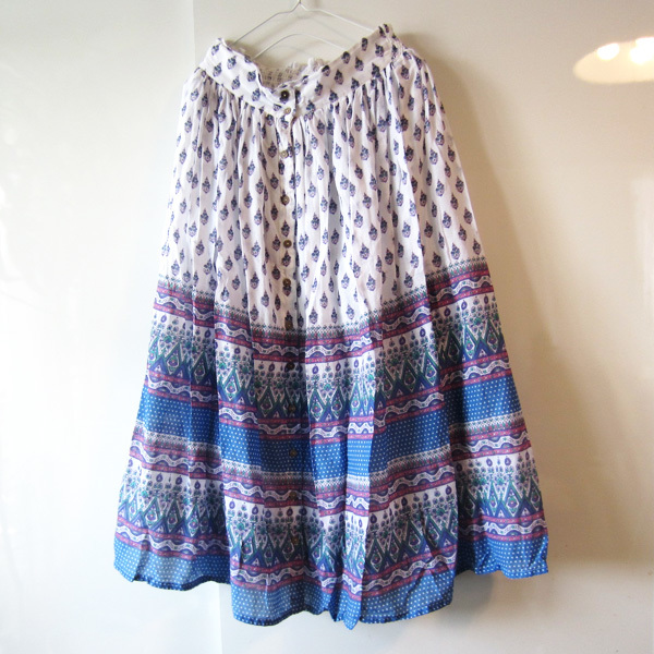 フォークロア柄 ロングスカート フリーサイズ ドレープ