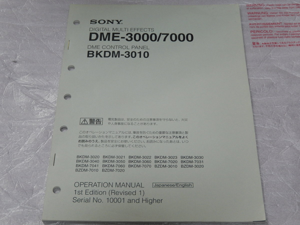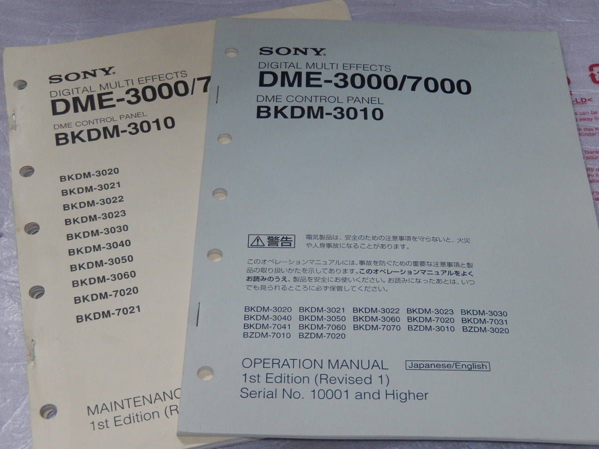 ★★ DME-3000/7000 (SONY) DME OPERATION MANUAL & MAINTENANCE MANUAL  DME3070OPMMOA ★★