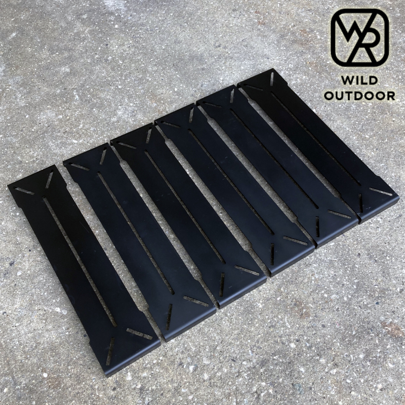 「漆黒を、あなたの手に。」 遂に登場。大人気のタフまるアイアンテーブルから、漆黒のアイアン天板ver.アイアンマンのプレート単品が登場です。 約90mm幅のアイアンプレートが一枚ずつ並ぶ事で今までになかった並べ替えが可能。 また、アイアン天板を採用することにより、熱々のスキレットなど気にすることなく置ける。 細部までこだわったブラックギアをタフまるをカッコよく使いたい! 既タフ丸テーブルを購入されているお客様にプレート単品での販売です。 キャンパーの定番アイテム。 アイアンプレートが6枚セットになり用途に合わせてアレンジ自在になります。 商品仕様 ★プレートサイズ:横90mm×縦360mm 6枚 ※個体により歪みなど若干のサイズ誤差が生じる場合がございます。 予めご了承ください。 ★塗装 ★手塗りつや消しブラック ※塗装が剥がれる場合がございます。予めご了承ください。 ★材質:鉄 ★セット内容:アイアンマン天板6枚 ※こちらの商品にはタフまる・ランタンスタンド・シェラカップ・かご・キッチンペーパーホルダー等はイメージの為付属しておりません。天板のみの販売です。 別途お買い求め下さい。 ★※購入時の注意事項★ ★本品は職人が一つずつハンドメイドで製作しております。その為大きさ、塗装に若干のバラつきやムラがございます。また、溶接は仕上がり重視のティグ溶接では無く鉄骨や橋脚の溶接時に使用するアーク溶接になります。予めご了承ください。★ ※細部のデザインは製造ロットにより予告なしに若干変更になる場合がございます。 何卒ご了承願います。 ※海外輸入品に付きスレ、キズ等がある場合がございますので、何卒ご了承願います。 ※良いものをより安く提供できるよう、エコ梱包させていただいております。 | |||