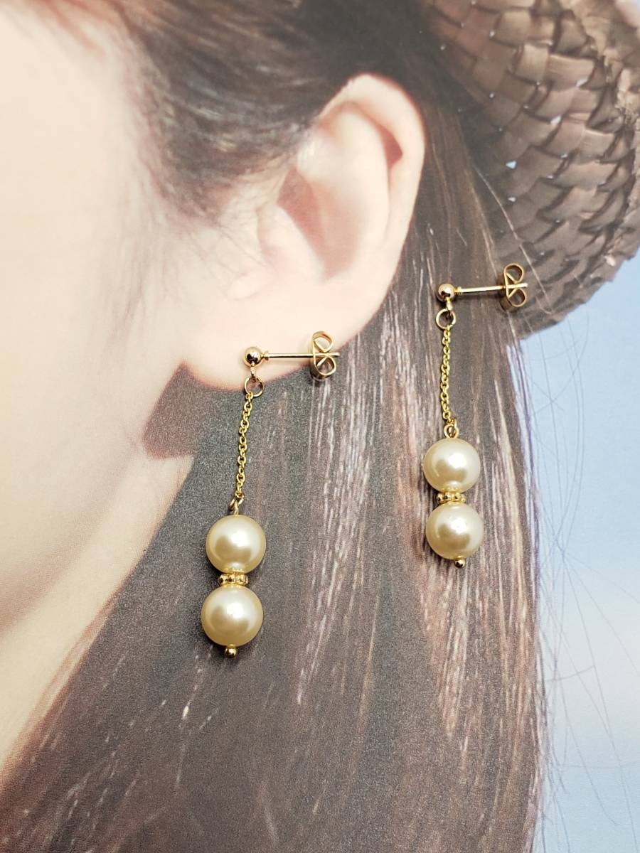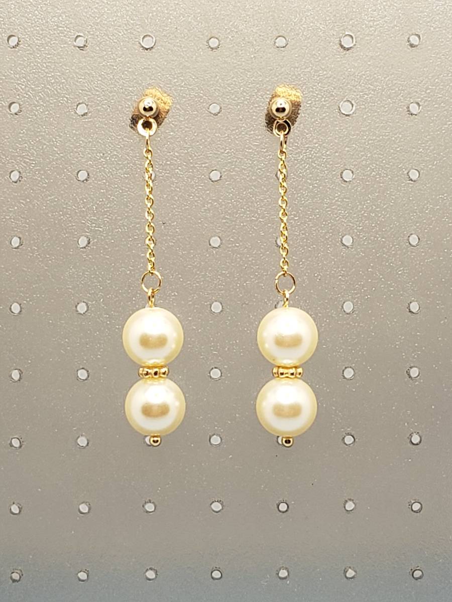 ★ハンドメイド イヤリングorピアス B749 樹脂フック・クリップ式イヤリング金具など変更無料 パール★