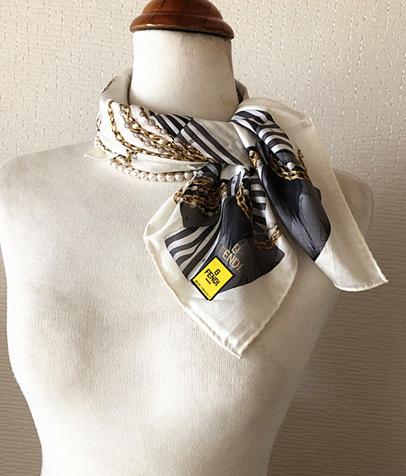 稀少柄フェンディFENDI大判ハンカチ ミニスカーフストール膝掛け 0326E31580