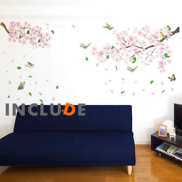 ウォールステッカー 花 さくら並木 桜 桜花 春 小薔薇 フラワー ソメイヨシノ 綺麗 花びら 桜吹雪 満開 春の風 ピンク チ