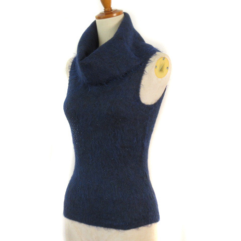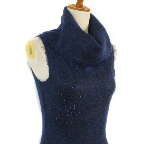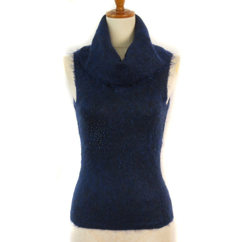 アイシービー iCB カットソー ニット オフタートル ビーズ S 青 ブルー レディース