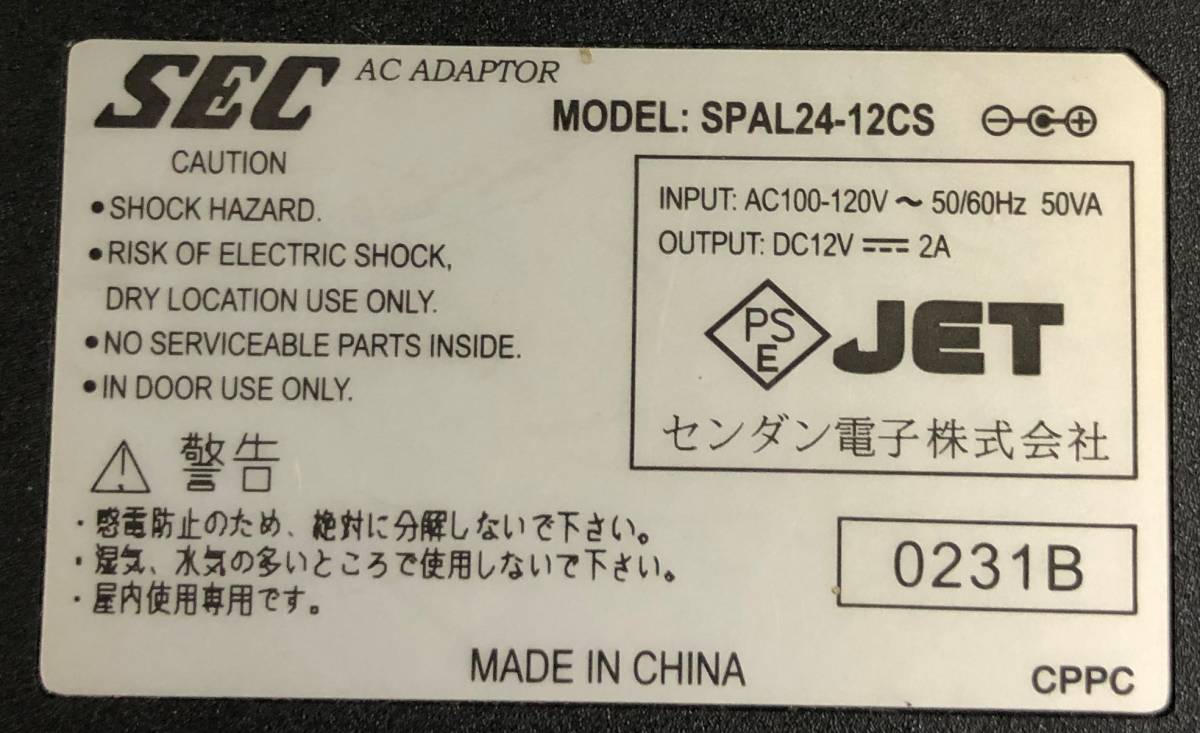 SEC ACアダプター SPAL24-12CS 12V 2A