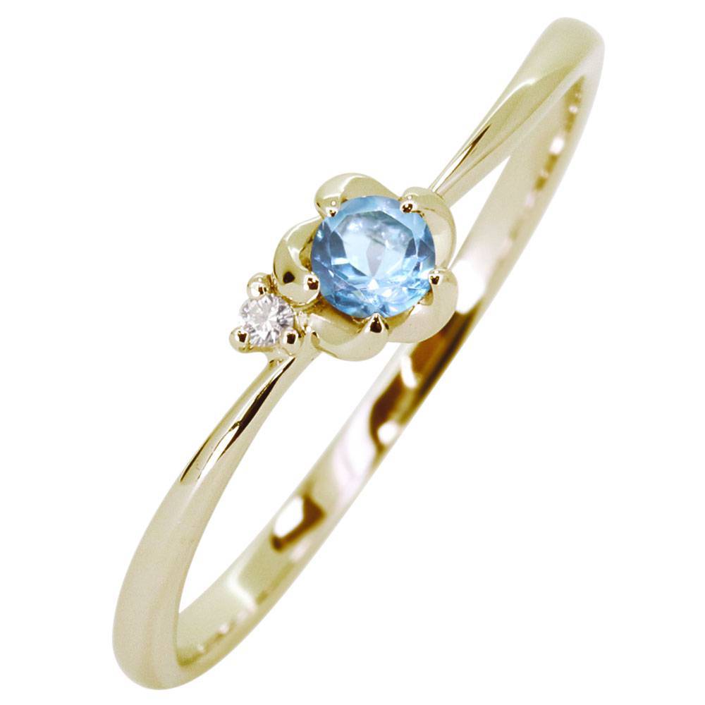 11月誕生石ブルートパーズを使用した10金製の、フラワー(花)モチーフリング(指輪)です。