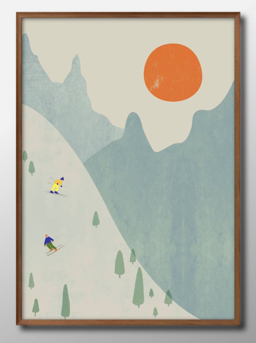 11893■送料無料!!アートポスター 絵画 A3サイズ 『スキー 雪 冬 ビンテージ』イラスト デザイン 北欧 マット紙