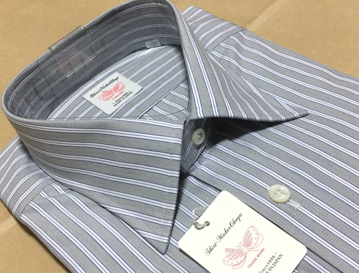 CHOYA1886 長袖セミワイド 日本製 綿100%100番手双糸 39-78 グレーストライプ チョーヤ 山喜 定価14.300円