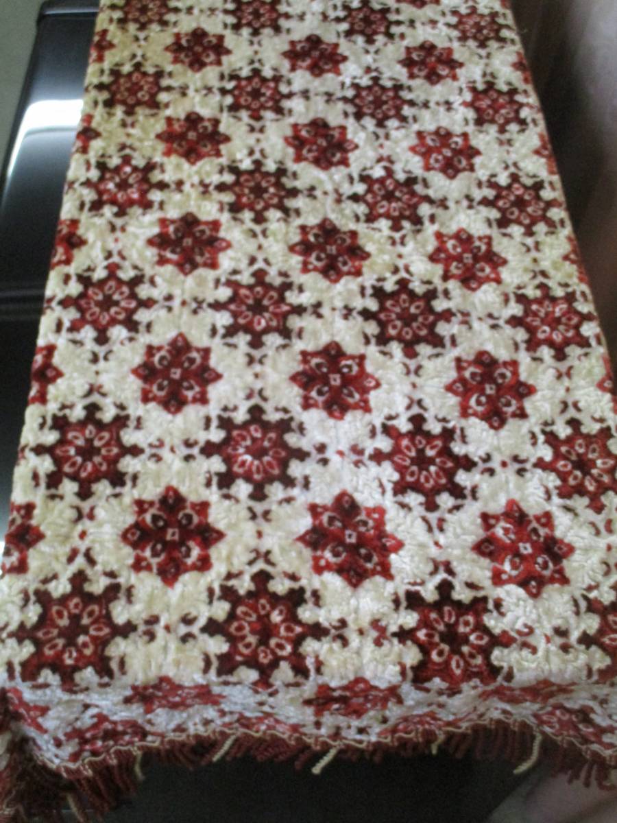 寸法(メジャーをあてがい、目測で計測した値):横幅約172,5cm (ひだ迄含むと約185cm)、 奥行 (縦寸)約55~60cm (ひだ迄含むと約62~68cm)