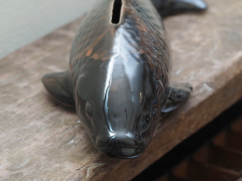 【錦鯉 金運アップ♪貯金箱】黒 鯉 陶器 オブジェ  ビオトープ コイ こい 床の間 置物 ガーデニング