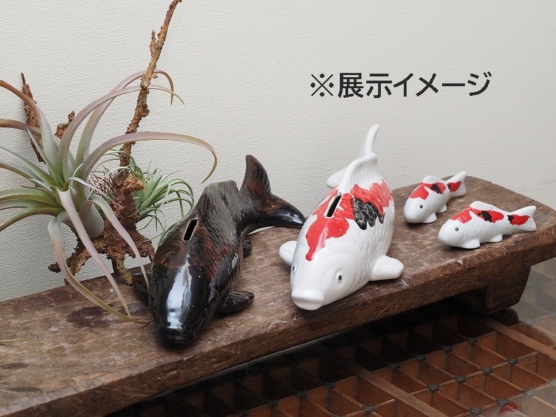 1匹 2830円→2650円 「鯉」は金運・出世運アップの縁起物! 大きな口を開けて餌を食べるさまが「財を吸い込む」と いわれているので、貯金箱としてもご利益がありそうです。 鯉は別名「泳ぐ宝石」と呼ばれ商売繁盛の象徴として古くから親しまれています。 錦鯉は金魚鉢に入れる陶器で人気のシリーズ。 貯金箱になって入荷いたしました。 尾の曲がり方がそれぞれ違うので、置いた時に動きがあります。 そろそろ暖かくなってきましたので、ガーデングッツとしてもいかがでしょうか。お部屋はもちろん、玄関やお庭など屋外に置いても本物の鯉に近い大きさですので迫力があります。 サイズ(約) 全長32cm(口から尾) 幅10.5(ヒレからヒレ) 高さ9.5cm ※写真と同等品を発送いたします。多少個体差がございます。 ■数量・色(赤白黒or黒)の組み合わせはご自由にお選びいただけます。 1匹2830円→2650円 2匹5300円→4650円 3匹7300円→6600円 4匹9300円→8620円 ■同梱稚魚 同梱価格 貯金箱と一緒に写っている お写真のものは沈鯉小のサイズで水に沈みます。 ⑮沈鯉小 全長10㎝ 幅3cm 高さ3.6cm・・・450円/個 ⑭沈鯉大 全長15㎝ 幅4cm 高さ5cm ・・・770円/個 ※数量おまとめの場合は以下同梱価格にさせていただきます。 最後の商品ページからお選びください。 ■⑱カエル⑪亀小⑧染付魚・・・400円/個 ■⑰蓮小③亀大⑦虹色魚⑥浮鯉⑮沈鯉小・・・450円/個 ■⑯蓮大・・・500円/個 ■⑲蓮乗蛙(くっついています)・・・新入荷特別価格550円→500円/個 ■浮花(⑳ピンク黄色青)・・・新入荷特別価格550円→500円/個 ■⑨染付蛙、金魚⑫平赤(以前より大きくなりました)⑬平黒④丸ピンク⑤丸赤⑩染付)・・・新入荷特別価格550円→500円/個 ■②くじら小・・・550円/個 ■⑭沈鯉大①くじら大・・・770円/個 商品の性質上、浮き方や沈み方は個体差がございます。 黒い点や絵のカスレ、絵や色のはみだし、中に欠片が入ってカラカラ音がしたりなどが若干はじめからある場合がございますので、あらかじめご了承下さい。