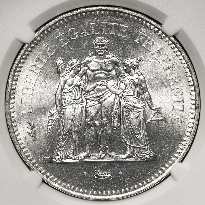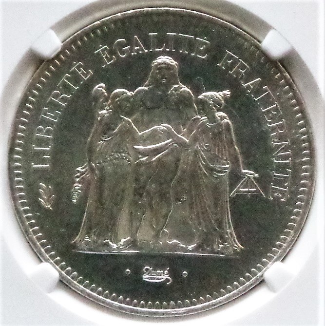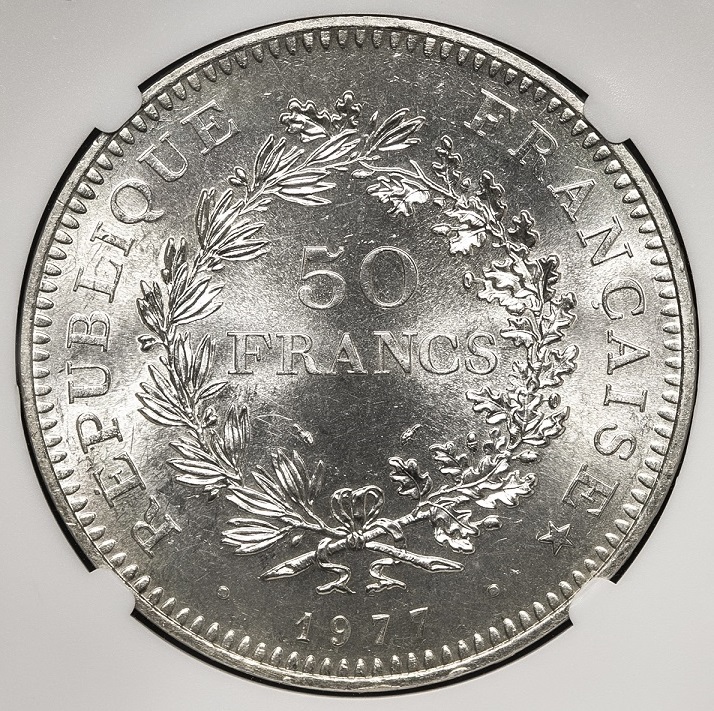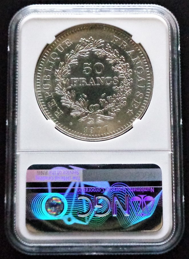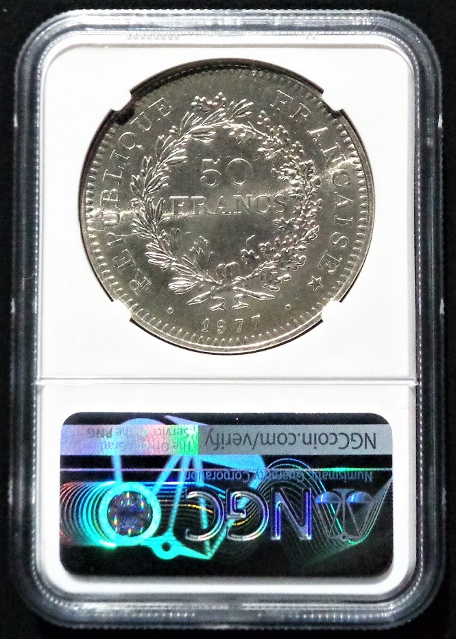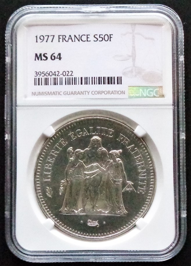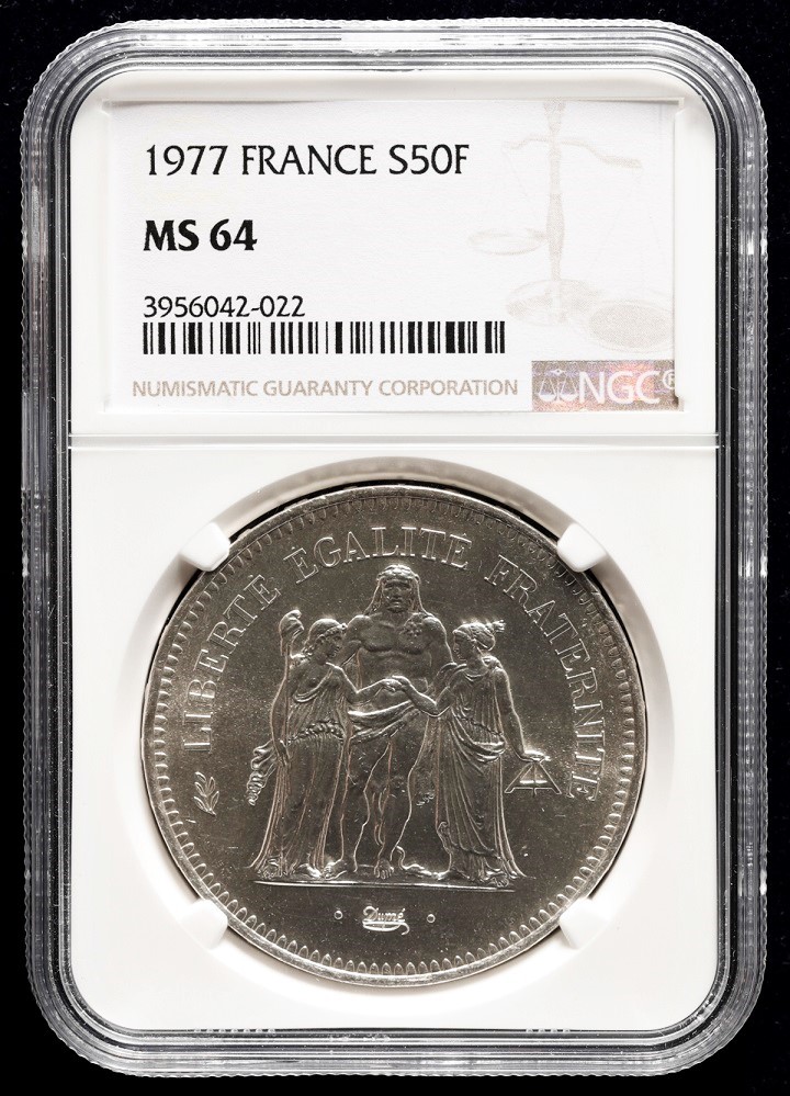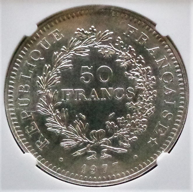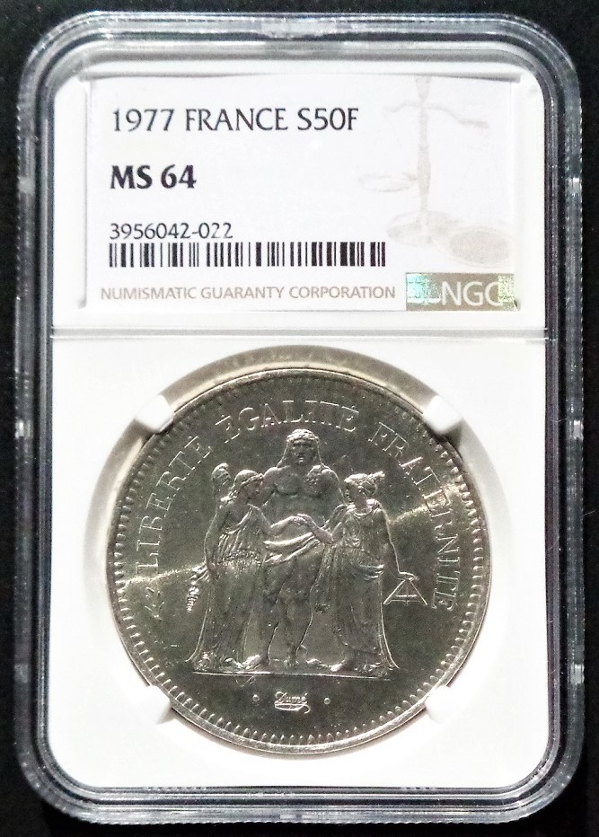 ■■フランス 50フラン銀貨 1977年 ヘラクレス HERCULES NGC MS64 未使用品 ずっしりとした重量感有り!■■