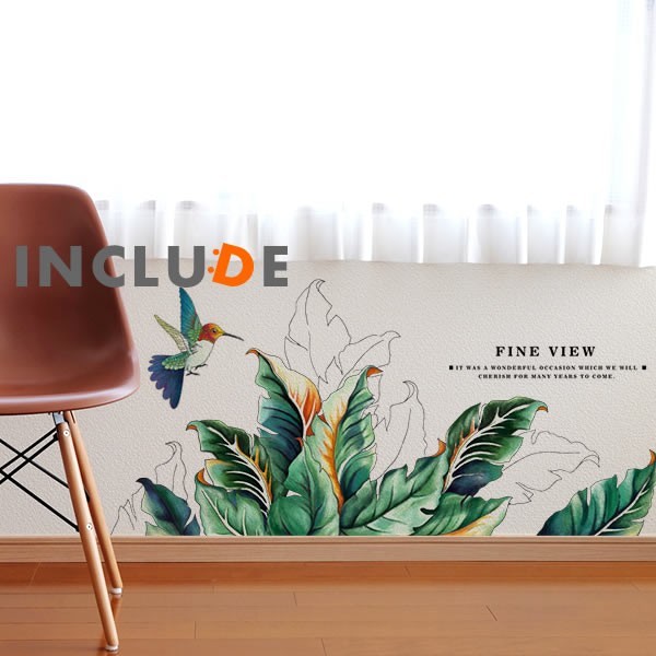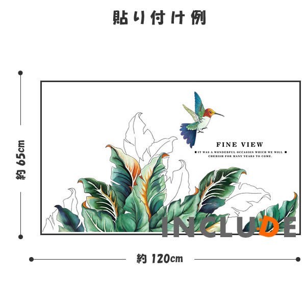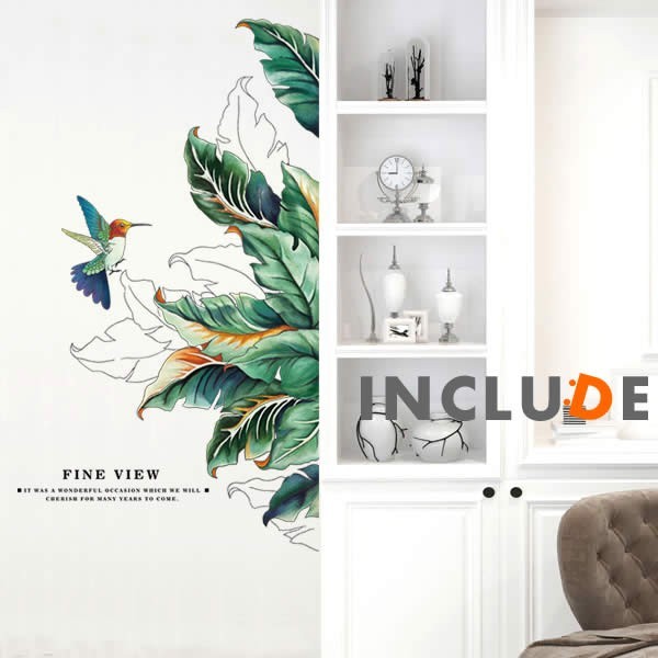 ウォールステッカー ハチドリ 小鳥 観葉植物 ボタニカル リーフ 南国 エンセーテ バショウ アジアン 世界最小の鳥 グリーン