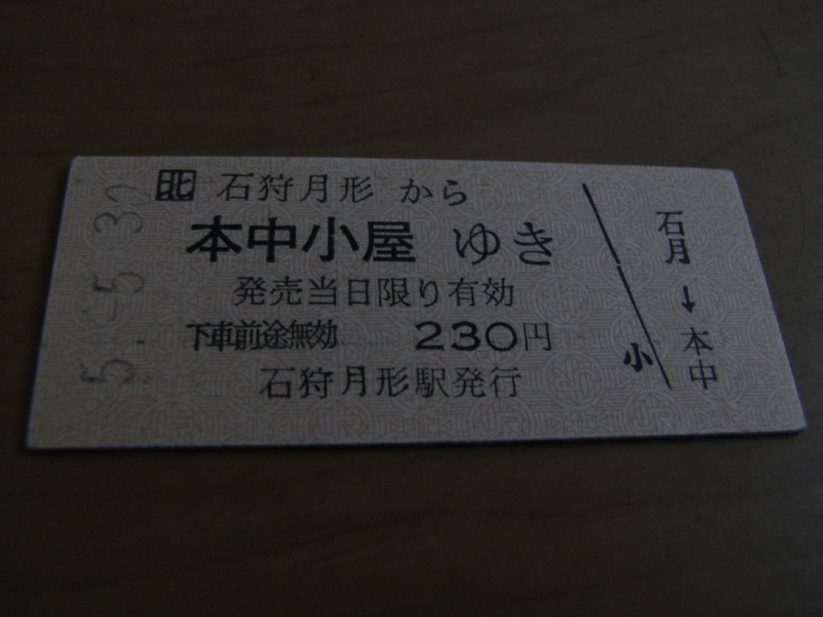 札沼線 石狩月形から本中小屋ゆき 230円 平成5年5月30日 石狩月形駅発行