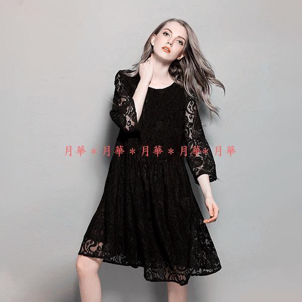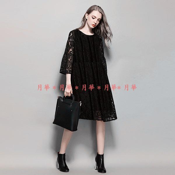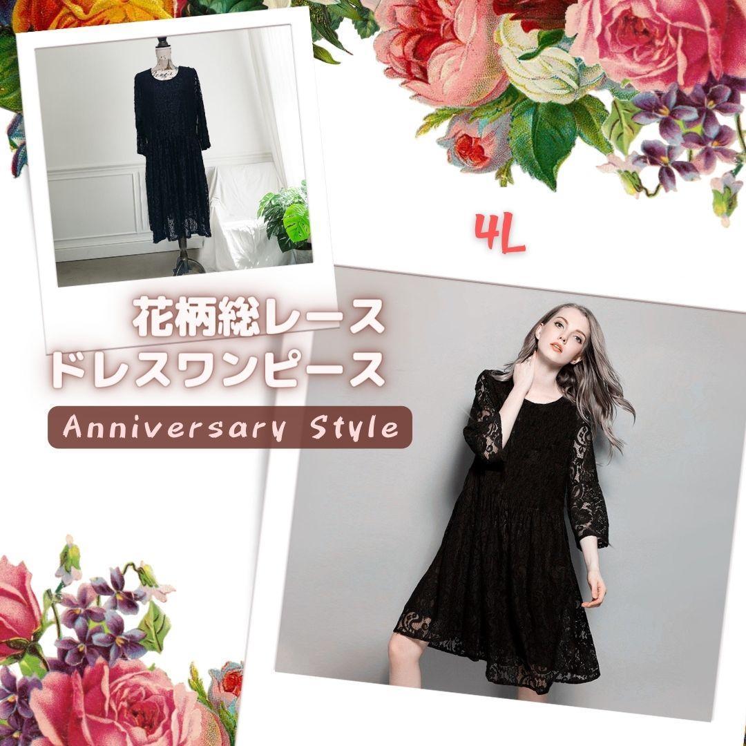ゆったり体型の方におすすめできる身幅ゆったりタイプの総レースドレスワンピース。
