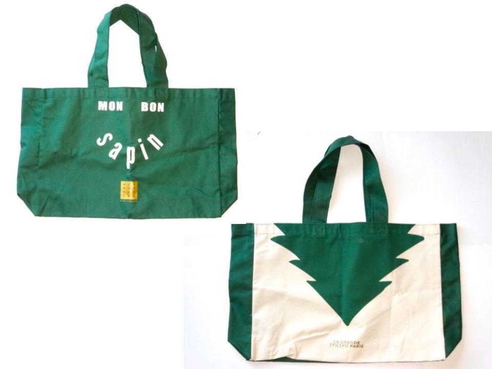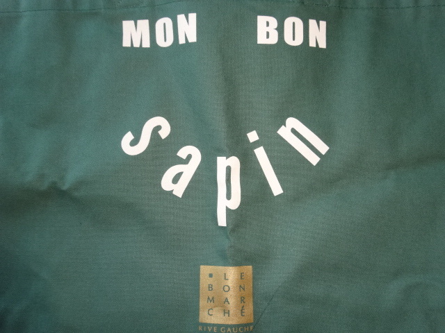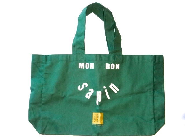 ● パリ デパート ボンマルシェ 限定 エコバッグ 特大 新品 LE BON MARCHE sapin コットン ユニセックス 生成り 肩掛け 丈夫 緑 グリーン 白 ツリー