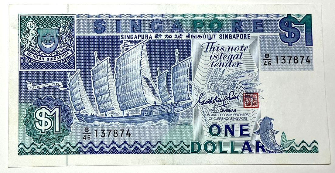 1991年にシンガポールを旅行中、キレイな紙幣を記念に保管しておいたものです。