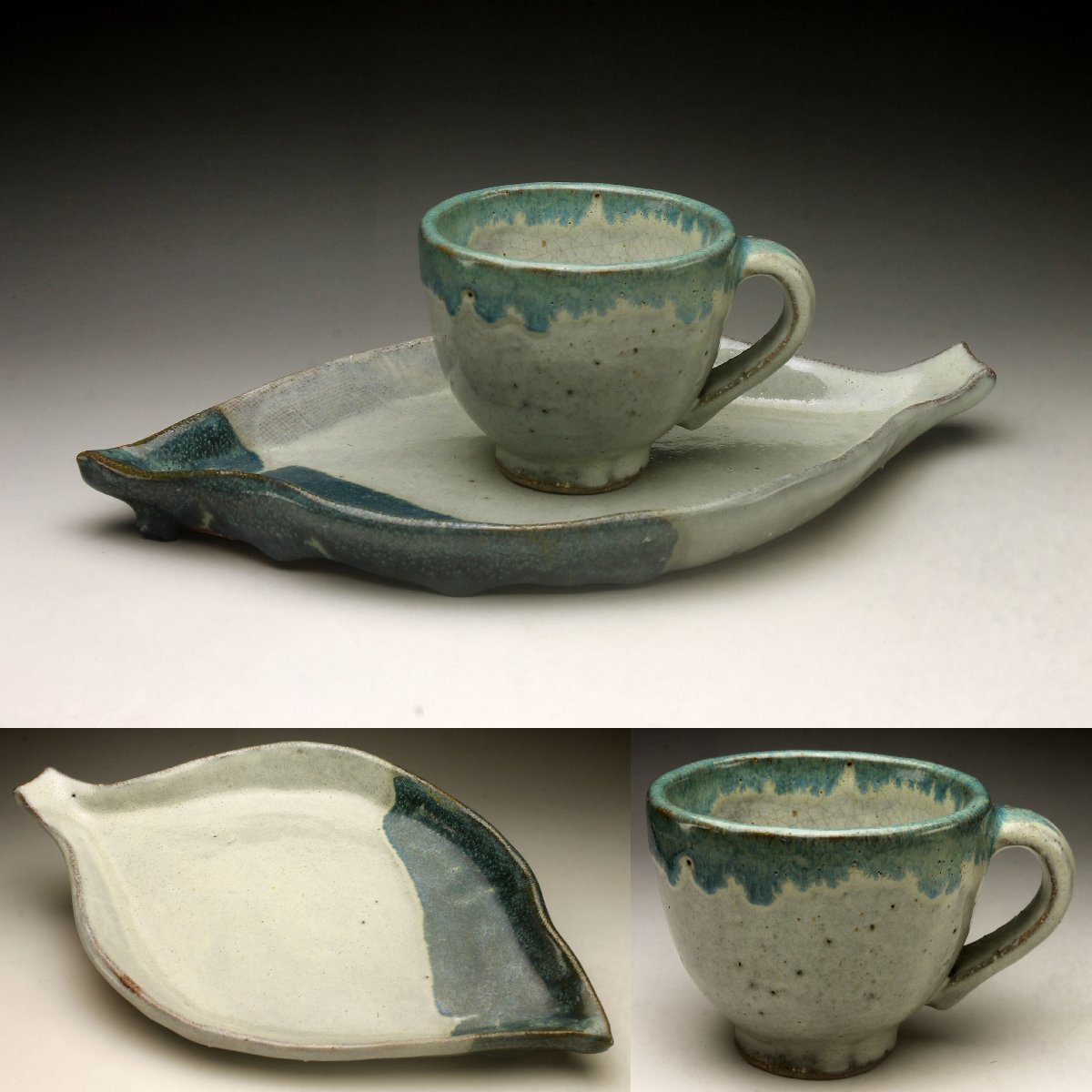【余韻】 時代物 美濃焼 窯変 コーヒーセット★カップ ソーサー パン皿 無傷美品<同梱可>