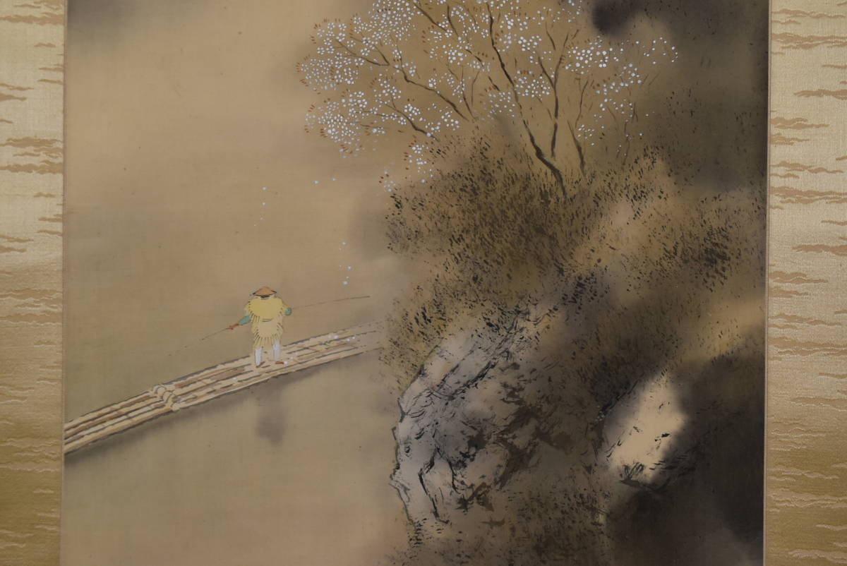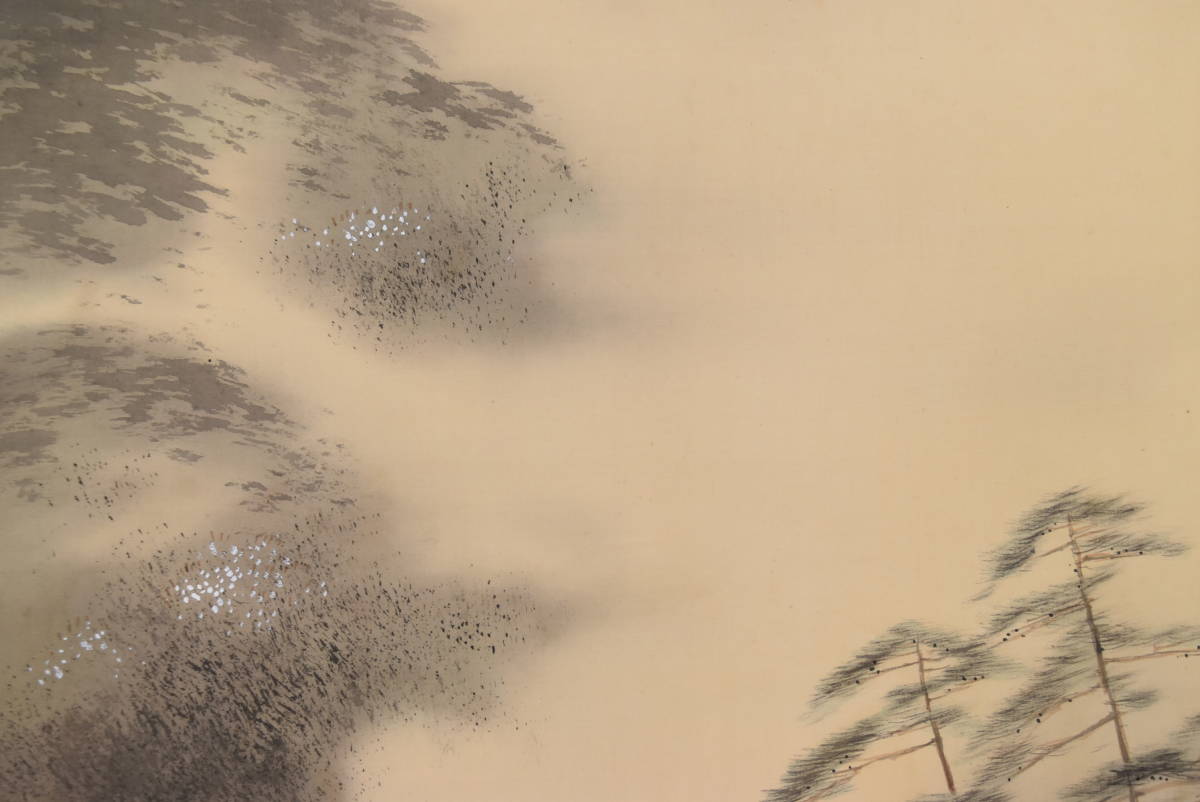 【作品状態】 本紙は絹本肉筆です。本紙は多少の薄汚れあります。表装は概ね良好です。八双の裏に多数の虫ナメあります。